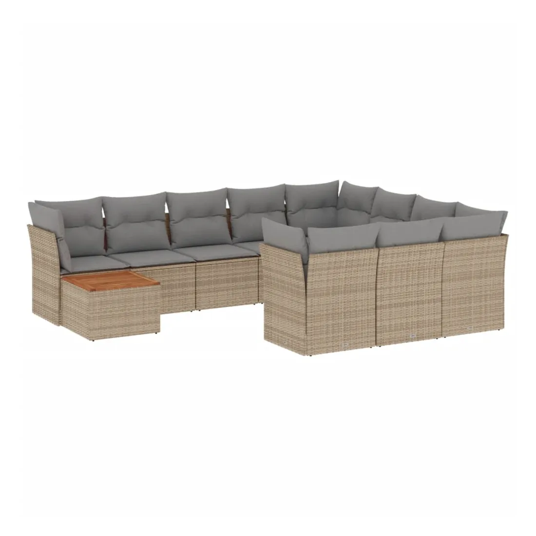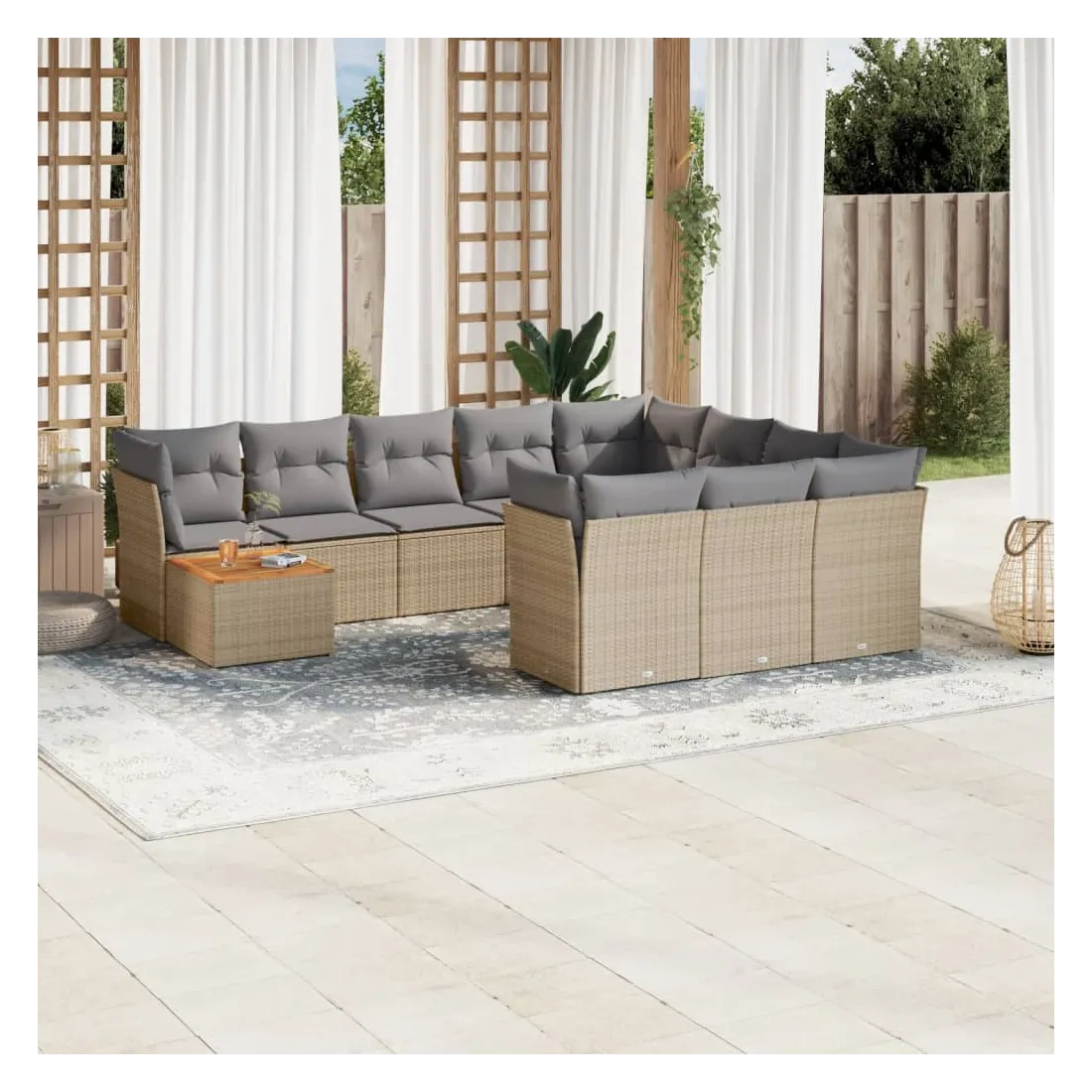 Salon de jardin et coussins 11 pcs mélange beige résine tressée