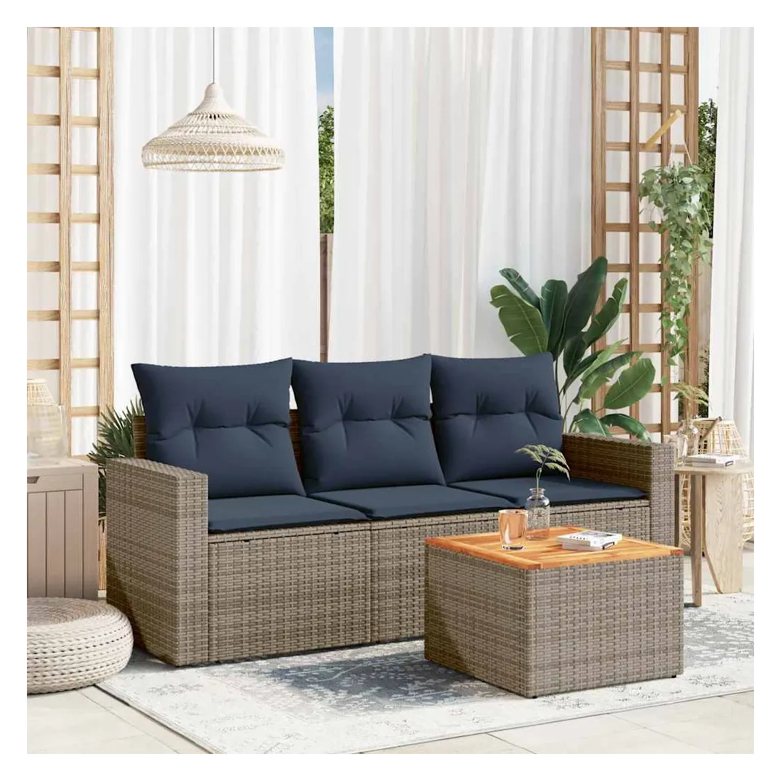 Cet ensemble de canapés de jardin est le complément parfait de votre arrière-cour, terrasse ou patio, offrant un espace confortable et accueillant pour discuter avec la famille et les amis ou simplement se détendre et profiter de l'extérieur. Matériau durable : la résine tressée, également connue sous le nom de poly rotin, est un matériau synthétique solide et nécessitant peu d'entretien qui ressemble au rotin naturel. Il est léger, facile à nettoyer et couramment utilisé pour les meubles d'extérieur en raison de sa durabilité et de ses propriétés de résistance aux intempéries.Fonction de rangement avec sac résistant à l'eau : chaque siège de jardin dispose d'un espace de rangement sous l'assise, complété par un sac résistant à l'eau pour ranger les coussins, les jouets et d'autres objets. Les sacs intérieurs sont dotés d'un couvercle et peuvent être solidement fixés aux sièges à l'aide de bandes auto-agrippantes pour plus de stabilité.Dessus stable et facile à nettoyer : cette table de jardin a un dessus en bois d'acacia robuste, durable et facile à nettoyer avec un chiffon humide.Housse amovible et lavable : ces coussins de siège sont dotés de housses amovibles pour un lavage et un entretien faciles.Conception modulaire : cet ensemble de meubles d'extérieur a une conception modulaire, ce qui le rend complètement flexible et facile à déplacer, afin que vous puissiez créer un agencement de meubles d'extérieur personnalisé. Bon à savoir :Pour que vos meubles d'extérieur restent beaux, nous vous recommandons de les protéger avec une housse imperméable.