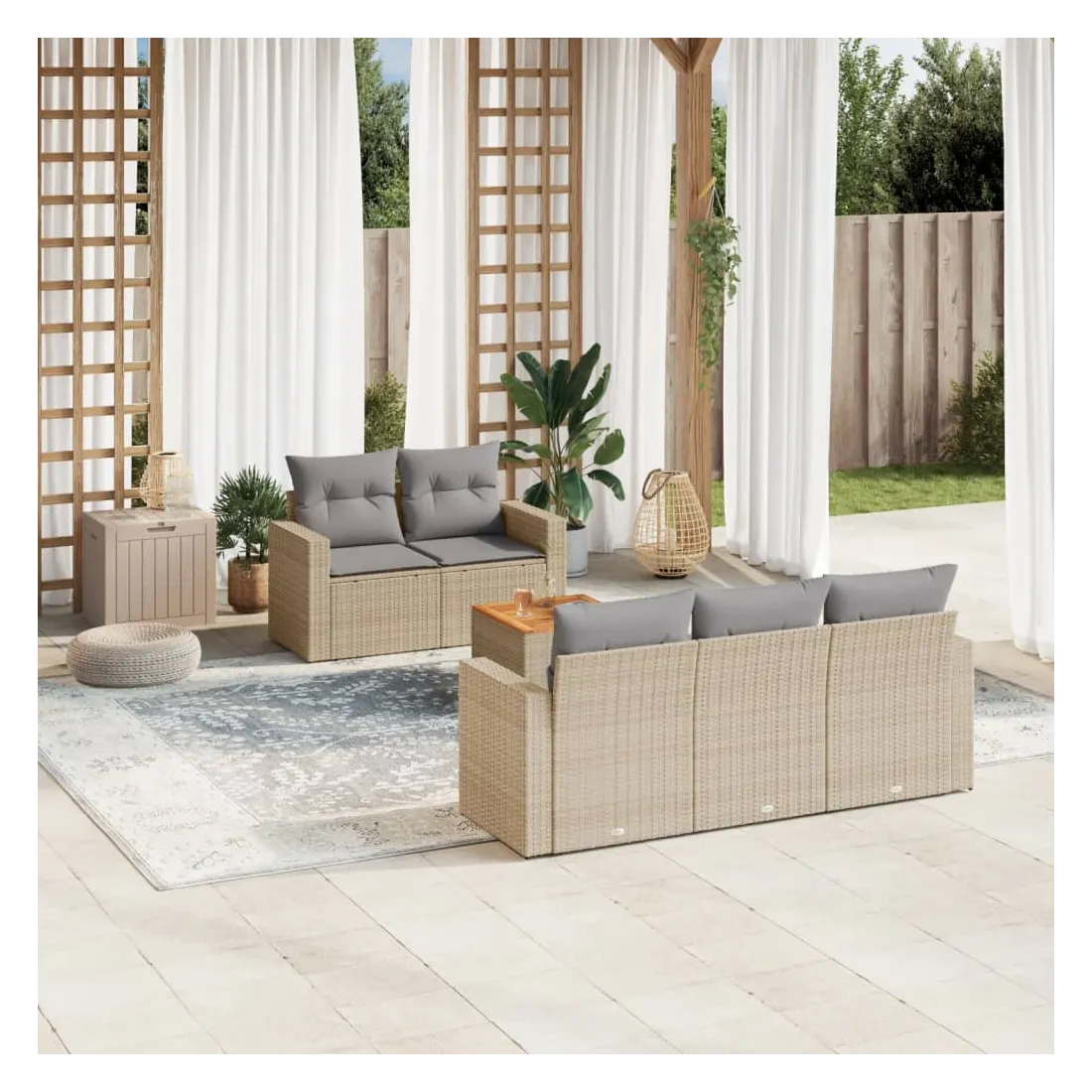 Cet ensemble de canapés de jardin est le complément parfait de votre arrière-cour, terrasse ou patio, offrant un espace confortable et accueillant pour discuter avec la famille et les amis ou simplement se détendre et profiter de l'extérieur. Matériau durable : la résine tressée, également connue sous le nom de poly rotin, est un matériau synthétique solide et nécessitant peu d'entretien qui ressemble au rotin naturel. Il est léger, facile à nettoyer et couramment utilisé pour les meubles d'extérieur en raison de sa durabilité et de ses propriétés de résistance aux intempéries.Fonction de rangement avec sac résistant à l'eau : chaque siège de jardin dispose d'un espace de rangement sous l'assise, complété par un sac résistant à l'eau pour ranger les coussins, les jouets et d'autres objets. Les sacs intérieurs sont dotés d'un couvercle et peuvent être solidement fixés aux sièges à l'aide de bandes auto-agrippantes pour plus de stabilité.Dessus stable et facile à nettoyer : cette table de jardin a un dessus en bois d'acacia robuste, durable et facile à nettoyer avec un chiffon humide.Housse amovible et lavable : ces coussins de siège sont dotés de housses amovibles pour un lavage et un entretien faciles.Conception modulaire : cet ensemble de meubles d'extérieur a une conception modulaire, ce qui le rend complètement flexible et facile à déplacer, afin que vous puissiez créer un agencement de meubles d'extérieur personnalisé. Bon à savoir :Pour que vos meubles d'extérieur restent beaux, nous vous recommandons de les protéger avec une housse imperméable.