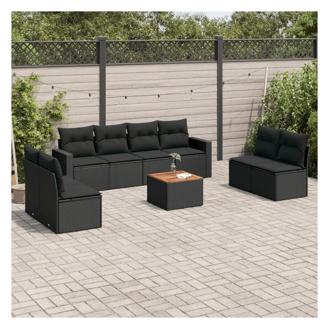 Cet ensemble de canapés de jardin est le complément parfait de votre arrière-cour, terrasse ou patio, offrant un espace confortable et accueillant pour discuter avec la famille et les amis ou simplement se détendre et profiter de l'extérieur. Matériau durable : la résine tressée, également connue sous le nom de poly rotin, est un matériau synthétique solide et nécessitant peu d'entretien qui ressemble au rotin naturel. Il est léger, facile à nettoyer et couramment utilisé pour les meubles d'extérieur en raison de sa durabilité et de ses propriétés de résistance aux intempéries.Fonction de rangement avec sac résistant à l'eau : chaque siège de jardin dispose d'un espace de rangement sous l'assise, complété par un sac résistant à l'eau pour ranger les coussins, les jouets et d'autres objets. Les sacs intérieurs sont dotés d'un couvercle et peuvent être solidement fixés aux sièges à l'aide de bandes auto-agrippantes pour plus de stabilité.Dessus stable et facile à nettoyer : cette table de jardin a un dessus en bois d'acacia robuste, durable et facile à nettoyer avec un chiffon humide.Housse amovible et lavable : ces coussins de siège sont dotés de housses amovibles pour un lavage et un entretien faciles.Conception modulaire : cet ensemble de meubles d'extérieur a une conception modulaire, ce qui le rend complètement flexible et facile à déplacer, afin que vous puissiez créer un agencement de meubles d'extérieur personnalisé. Bon à savoir :Pour que vos meubles d'extérieur restent beaux, nous vous recommandons de les protéger avec une housse imperméable.