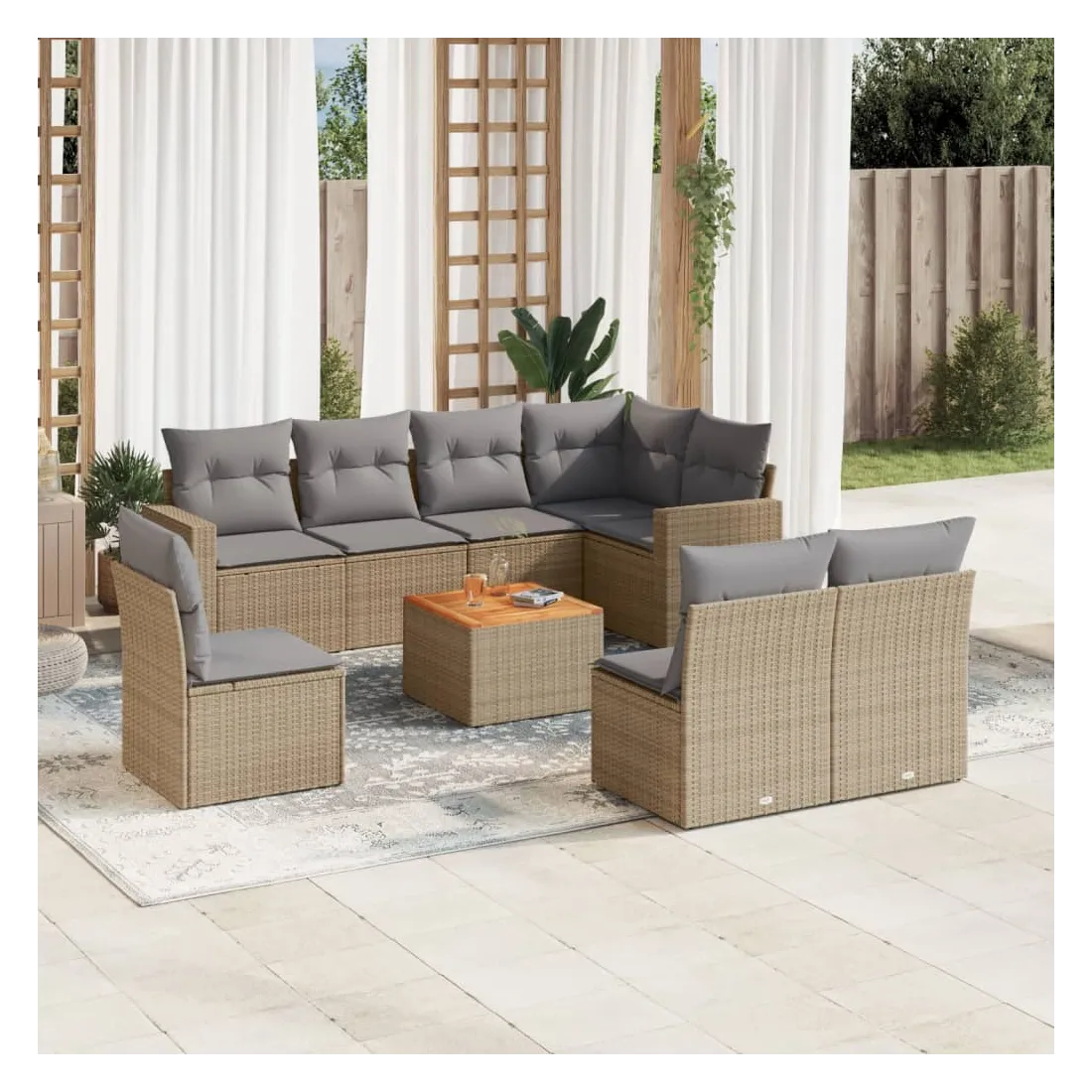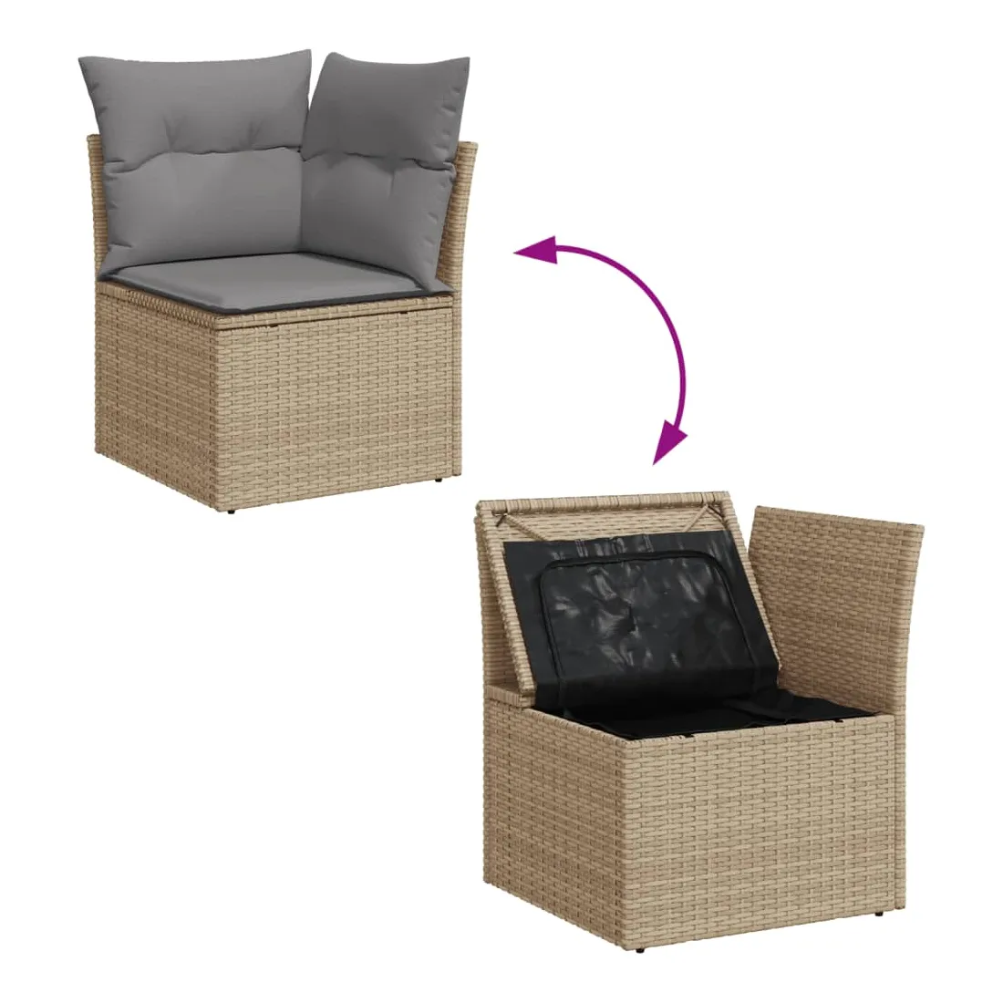Cet ensemble de canapés de jardin est le complément parfait de votre arrière-cour, terrasse ou patio, offrant un espace confortable et accueillant pour discuter avec la famille et les amis ou simplement se détendre et profiter de l'extérieur. Matériau durable : la résine tressée, également connue sous le nom de poly rotin, est un matériau synthétique solide et nécessitant peu d'entretien qui ressemble au rotin naturel. Il est léger, facile à nettoyer et couramment utilisé pour les meubles d'extérieur en raison de sa durabilité et de ses propriétés de résistance aux intempéries.Fonction de rangement avec sac résistant à l'eau : chaque siège de jardin dispose d'un espace de rangement sous l'assise, complété par un sac résistant à l'eau pour ranger les coussins, les jouets et d'autres objets. Les sacs intérieurs sont dotés d'un couvercle et peuvent être solidement fixés aux sièges à l'aide de bandes auto-agrippantes pour plus de stabilité.Dessus stable et facile à nettoyer : cette table de jardin a un dessus en bois d'acacia robuste, durable et facile à nettoyer avec un chiffon humide.Housse amovible et lavable : ces coussins de siège sont dotés de housses amovibles pour un lavage et un entretien faciles.Conception modulaire : cet ensemble de meubles d'extérieur a une conception modulaire, ce qui le rend complètement flexible et facile à déplacer, afin que vous puissiez créer un agencement de meubles d'extérieur personnalisé. Bon à savoir :Pour que vos meubles d'extérieur restent beaux, nous vous recommandons de les protéger avec une housse imperméable.