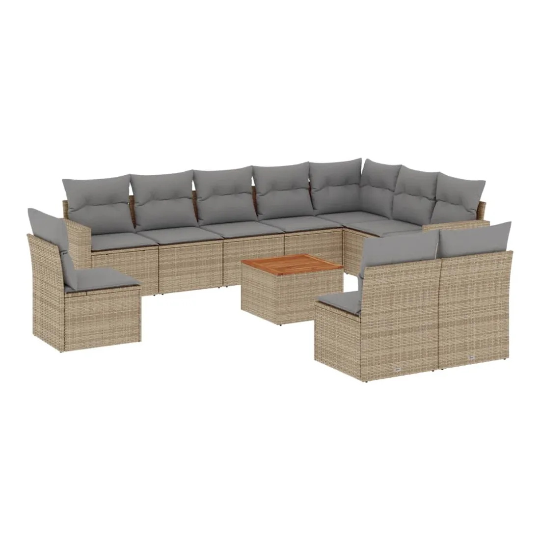 Cet ensemble de canapés de jardin est le complément parfait de votre arrière-cour, terrasse ou patio, offrant un espace confortable et accueillant pour discuter avec la famille et les amis ou simplement se détendre et profiter de l'extérieur. Matériau durable : la résine tressée, également connue sous le nom de poly rotin, est un matériau synthétique solide et nécessitant peu d'entretien qui ressemble au rotin naturel. Il est léger, facile à nettoyer et couramment utilisé pour les meubles d'extérieur en raison de sa durabilité et de ses propriétés de résistance aux intempéries.Fonction de rangement avec sac résistant à l'eau : chaque siège de jardin dispose d'un espace de rangement sous l'assise, complété par un sac résistant à l'eau pour ranger les coussins, les jouets et d'autres objets. Les sacs intérieurs sont dotés d'un couvercle et peuvent être solidement fixés aux sièges à l'aide de bandes auto-agrippantes pour plus de stabilité.Dessus stable et facile à nettoyer : cette table de jardin a un dessus en bois d'acacia robuste, durable et facile à nettoyer avec un chiffon humide.Housse amovible et lavable : ces coussins de siège sont dotés de housses amovibles pour un lavage et un entretien faciles.Conception modulaire : cet ensemble de meubles d'extérieur a une conception modulaire, ce qui le rend complètement flexible et facile à déplacer, afin que vous puissiez créer un agencement de meubles d'extérieur personnalisé. Bon à savoir :Pour que vos meubles d'extérieur restent beaux, nous vous recommandons de les protéger avec une housse imperméable.