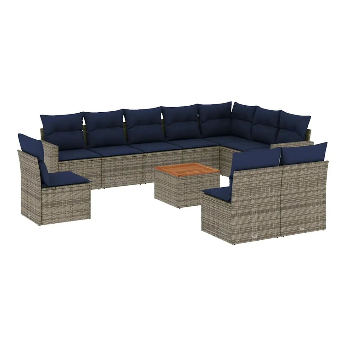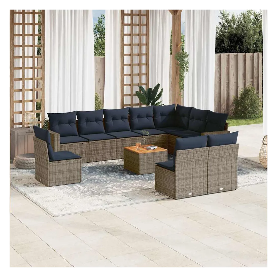 Cet ensemble de canapés de jardin est le complément parfait de votre arrière-cour, terrasse ou patio, offrant un espace confortable et accueillant pour discuter avec la famille et les amis ou simplement se détendre et profiter de l'extérieur. Matériau durable : la résine tressée, également connue sous le nom de poly rotin, est un matériau synthétique solide et nécessitant peu d'entretien qui ressemble au rotin naturel. Il est léger, facile à nettoyer et couramment utilisé pour les meubles d'extérieur en raison de sa durabilité et de ses propriétés de résistance aux intempéries.Fonction de rangement avec sac résistant à l'eau : chaque siège de jardin dispose d'un espace de rangement sous l'assise, complété par un sac résistant à l'eau pour ranger les coussins, les jouets et d'autres objets. Les sacs intérieurs sont dotés d'un couvercle et peuvent être solidement fixés aux sièges à l'aide de bandes auto-agrippantes pour plus de stabilité.Dessus stable et facile à nettoyer : cette table de jardin a un dessus en bois d'acacia robuste, durable et facile à nettoyer avec un chiffon humide.Housse amovible et lavable : ces coussins de siège sont dotés de housses amovibles pour un lavage et un entretien faciles.Conception modulaire : cet ensemble de meubles d'extérieur a une conception modulaire, ce qui le rend complètement flexible et facile à déplacer, afin que vous puissiez créer un agencement de meubles d'extérieur personnalisé. Bon à savoir :Pour que vos meubles d'extérieur restent beaux, nous vous recommandons de les protéger avec une housse imperméable.