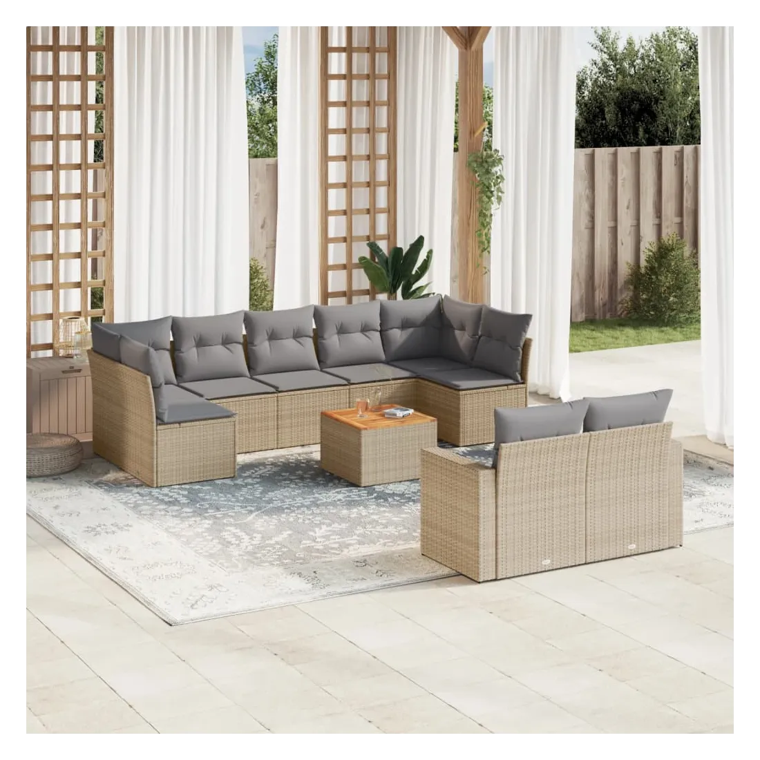 Salon de jardin et coussins 10 pcs mélange beige résine tressée
