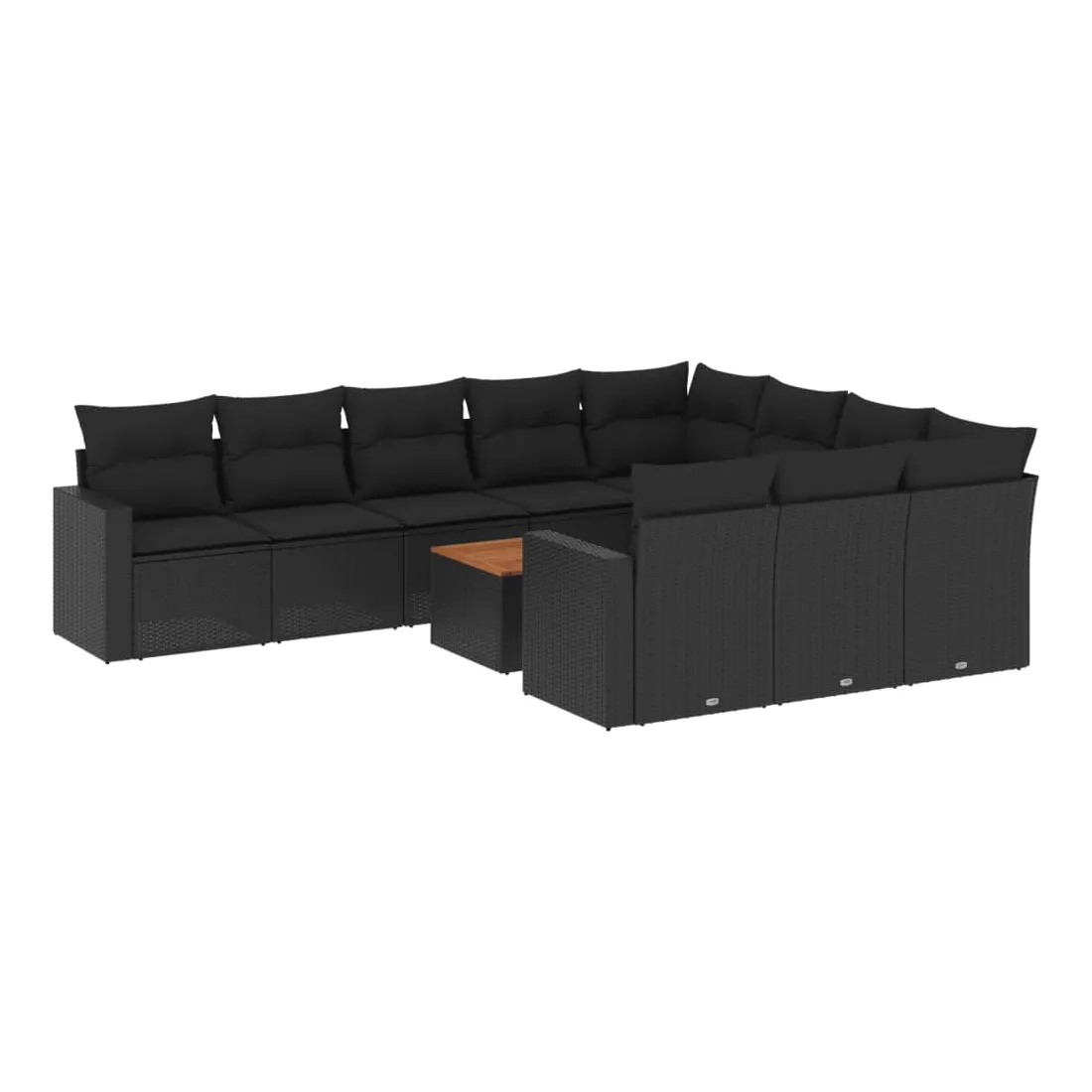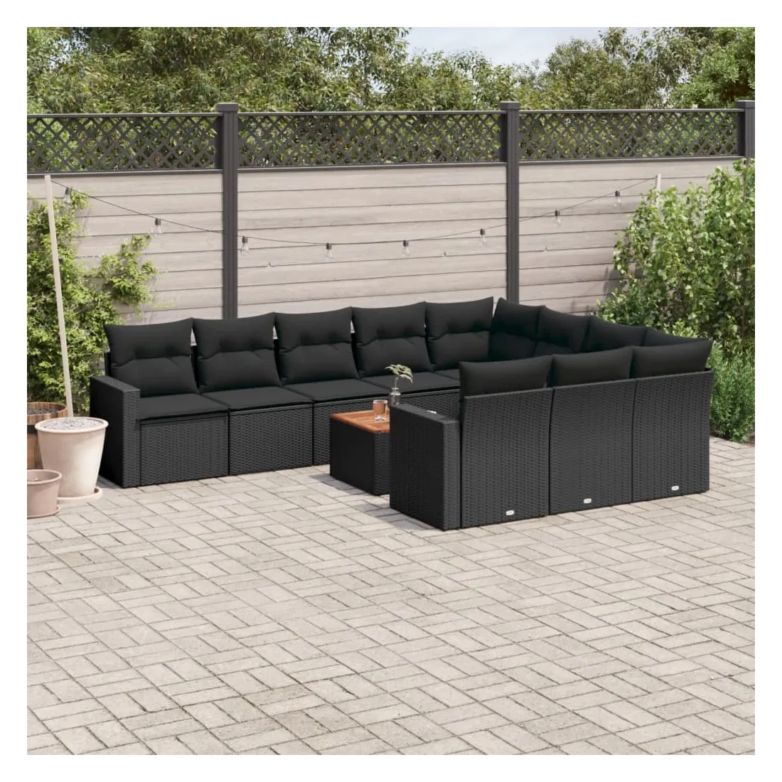 Salon de jardin 11 pcs avec coussins noir résine tressée