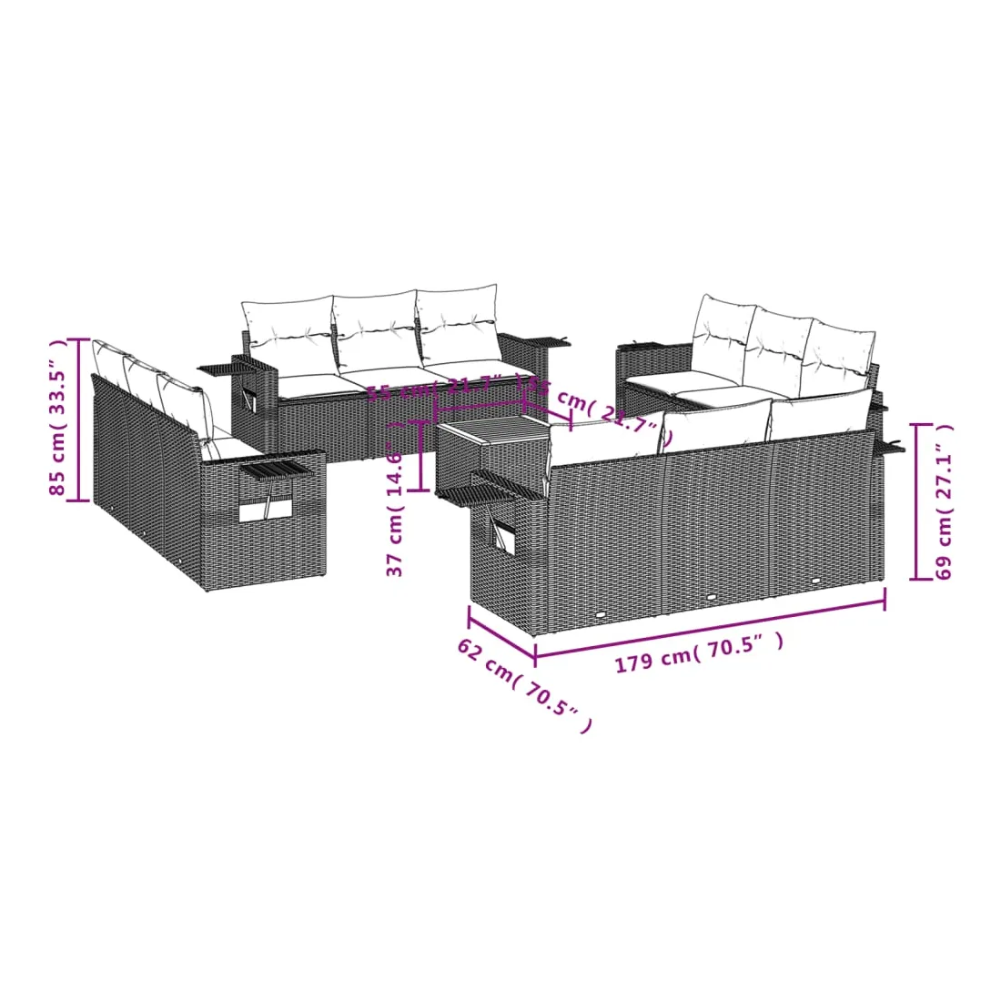 Cet ensemble de canapés de jardin est le complément parfait de votre arrière-cour, terrasse ou patio, offrant un espace confortable et accueillant pour discuter avec la famille et les amis ou simplement se détendre et profiter de l'extérieur. Matériau durable : la résine tressée, également connue sous le nom de poly rotin, est un matériau synthétique solide et nécessitant peu d'entretien qui ressemble au rotin naturel. Il est léger, facile à nettoyer et couramment utilisé pour les meubles d'extérieur en raison de sa durabilité et de ses propriétés de résistance aux intempéries.Fonction de rangement avec sac résistant à l'eau : chaque siège de jardin dispose d'un espace de rangement sous l'assise, complété par un sac résistant à l'eau pour ranger les coussins, les jouets et d'autres objets. Les sacs intérieurs sont dotés d'un couvercle et peuvent être solidement fixés aux sièges à l'aide de bandes auto-agrippantes pour plus de stabilité.Dessus stable et facile à nettoyer : cette table de jardin a un dessus en bois d'acacia robuste, durable et facile à nettoyer avec un chiffon humide.Table d'appoint pratique : ce mobilier d'extérieur comprend des tables d'appoint pliables avec un ressort à gaz sur les accoudoirs, offrant des endroits pratiques pour garder vos essentiels à portée de main.Conception modulaire : cet ensemble de meubles d'extérieur a une conception modulaire, ce qui le rend complètement flexible et facile à déplacer, afin que vous puissiez créer un agencement de meubles d'extérieur personnalisé. Bon à savoir :Pour que vos meubles d'extérieur restent beaux, nous vous recommandons de les protéger avec une housse imperméable.