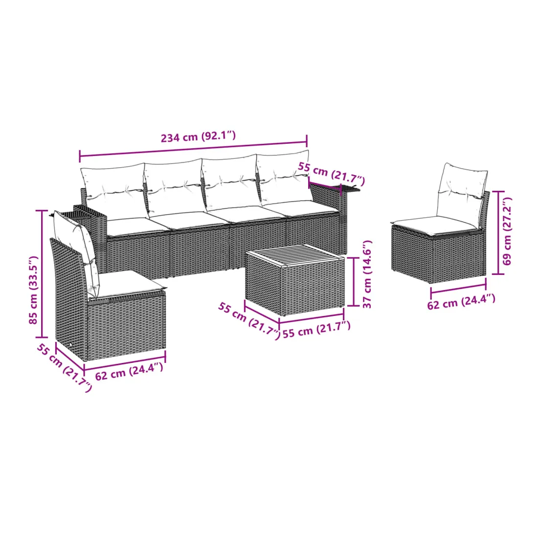Cet ensemble de canapés de jardin est le complément parfait de votre arrière-cour, terrasse ou patio, offrant un espace confortable et accueillant pour discuter avec la famille et les amis ou simplement se détendre et profiter de l'extérieur. Matériau durable : la résine tressée, également connue sous le nom de poly rotin, est un matériau synthétique solide et nécessitant peu d'entretien qui ressemble au rotin naturel. Il est léger, facile à nettoyer et couramment utilisé pour les meubles d'extérieur en raison de sa durabilité et de ses propriétés de résistance aux intempéries.Fonction de rangement avec sac résistant à l'eau : chaque siège de jardin dispose d'un espace de rangement sous l'assise, complété par un sac résistant à l'eau pour ranger les coussins, les jouets et d'autres objets. Les sacs intérieurs sont dotés d'un couvercle et peuvent être solidement fixés aux sièges à l'aide de bandes auto-agrippantes pour plus de stabilité.Dessus stable et facile à nettoyer : cette table de jardin a un dessus en bois d'acacia robuste, durable et facile à nettoyer avec un chiffon humide.Table d'appoint pratique : ce mobilier d'extérieur comprend des tables d'appoint pliables avec un ressort à gaz sur les accoudoirs, offrant des endroits pratiques pour garder vos essentiels à portée de main.Conception modulaire : cet ensemble de meubles d'extérieur a une conception modulaire, ce qui le rend complètement flexible et facile à déplacer, afin que vous puissiez créer un agencement de meubles d'extérieur personnalisé. Bon à savoir :Pour que vos meubles d'extérieur restent beaux, nous vous recommandons de les protéger avec une housse imperméable.