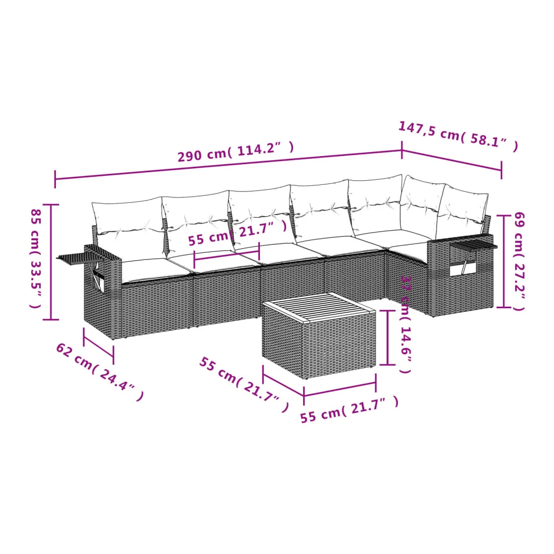 Cet ensemble de canapés de jardin est le complément parfait de votre arrière-cour, terrasse ou patio, offrant un espace confortable et accueillant pour discuter avec la famille et les amis ou simplement se détendre et profiter de l'extérieur. Matériau durable : la résine tressée, également connue sous le nom de poly rotin, est un matériau synthétique solide et nécessitant peu d'entretien qui ressemble au rotin naturel. Il est léger, facile à nettoyer et couramment utilisé pour les meubles d'extérieur en raison de sa durabilité et de ses propriétés de résistance aux intempéries.Fonction de rangement avec sac résistant à l'eau : chaque siège de jardin dispose d'un espace de rangement sous l'assise, complété par un sac résistant à l'eau pour ranger les coussins, les jouets et d'autres objets. Les sacs intérieurs sont dotés d'un couvercle et peuvent être solidement fixés aux sièges à l'aide de bandes auto-agrippantes pour plus de stabilité.Dessus stable et facile à nettoyer : cette table de jardin a un dessus en bois d'acacia robuste, durable et facile à nettoyer avec un chiffon humide.Table d'appoint pratique : ce mobilier d'extérieur comprend des tables d'appoint pliables avec un ressort à gaz sur les accoudoirs, offrant des endroits pratiques pour garder vos essentiels à portée de main.Conception modulaire : cet ensemble de meubles d'extérieur a une conception modulaire, ce qui le rend complètement flexible et facile à déplacer, afin que vous puissiez créer un agencement de meubles d'extérieur personnalisé. Bon à savoir :Pour que vos meubles d'extérieur restent beaux, nous vous recommandons de les protéger avec une housse imperméable.