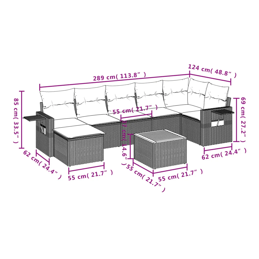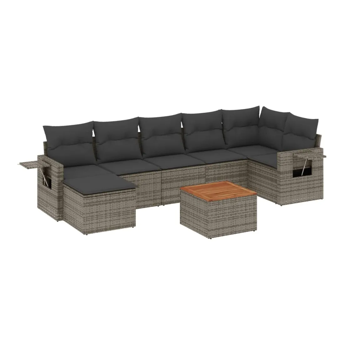Salon de jardin 8 pcs avec coussins gris résine tressée
