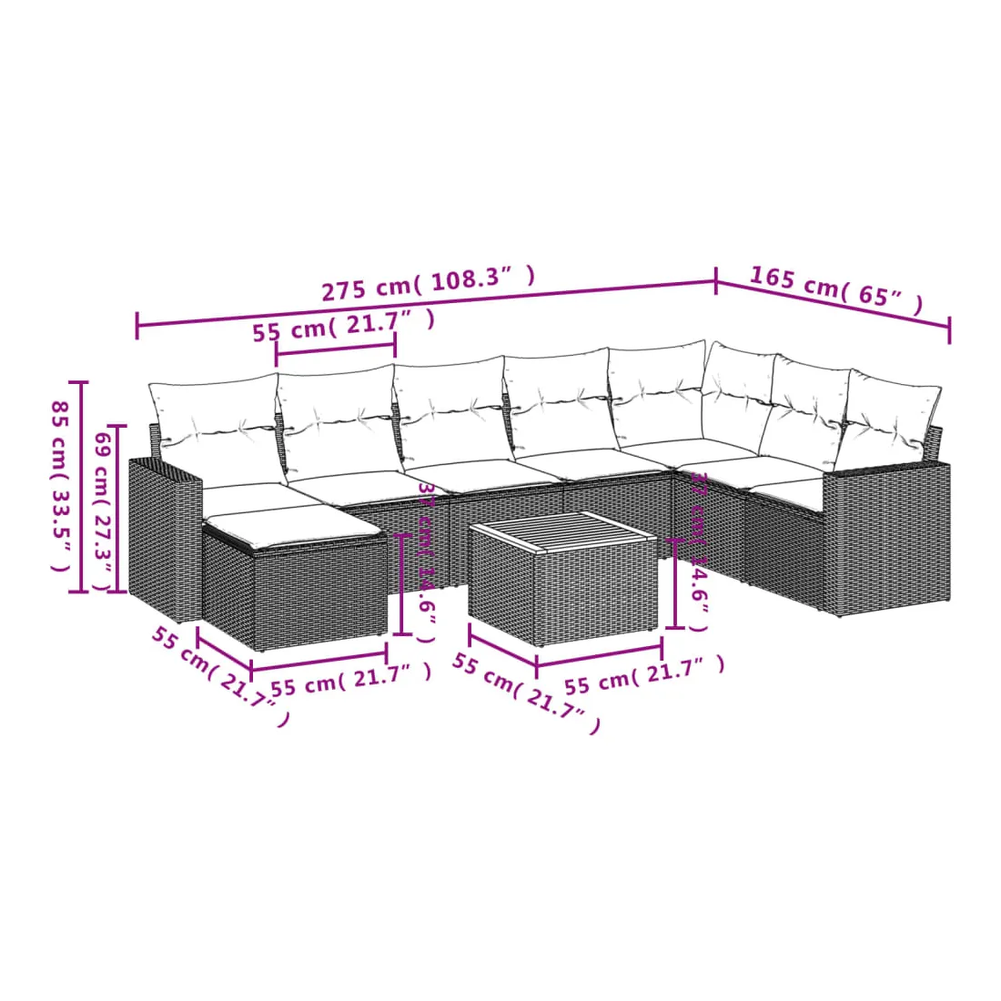 Cet ensemble de canapés de jardin est le complément parfait de votre arrière-cour, terrasse ou patio, offrant un espace confortable et accueillant pour discuter avec la famille et les amis ou simplement se détendre et profiter de l'extérieur. Matériau durable : la résine tressée, également connue sous le nom de poly rotin, est un matériau synthétique solide et nécessitant peu d'entretien qui ressemble au rotin naturel. Il est léger, facile à nettoyer et couramment utilisé pour les meubles d'extérieur en raison de sa durabilité et de ses propriétés de résistance aux intempéries.Fonction de rangement avec sac résistant à l'eau : chaque siège de jardin dispose d'un espace de rangement sous l'assise, complété par un sac résistant à l'eau pour ranger les coussins, les jouets et d'autres objets. Les sacs intérieurs sont dotés d'un couvercle et peuvent être solidement fixés aux sièges à l'aide de bandes auto-agrippantes pour plus de stabilité.Dessus stable et facile à nettoyer : cette table de jardin a un dessus en bois d'acacia robuste, durable et facile à nettoyer avec un chiffon humide.Table d'appoint pratique : ce mobilier d'extérieur comprend des tables d'appoint pliables avec un ressort à gaz sur les accoudoirs, offrant des endroits pratiques pour garder vos essentiels à portée de main.Conception modulaire : cet ensemble de meubles d'extérieur a une conception modulaire, ce qui le rend complètement flexible et facile à déplacer, afin que vous puissiez créer un agencement de meubles d'extérieur personnalisé. Bon à savoir :Pour que vos meubles d'extérieur restent beaux, nous vous recommandons de les protéger avec une housse imperméable.
