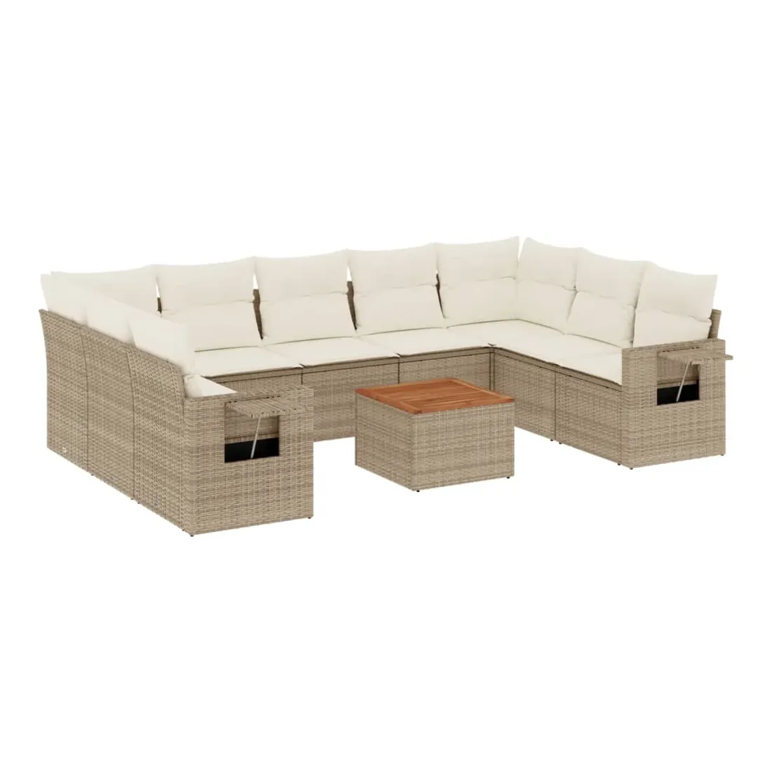 Salon de jardin avec coussins 10 pcs beige résine tressée
