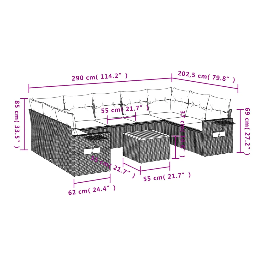 • 9 x coussin d'assise avec housse amovible et lavable