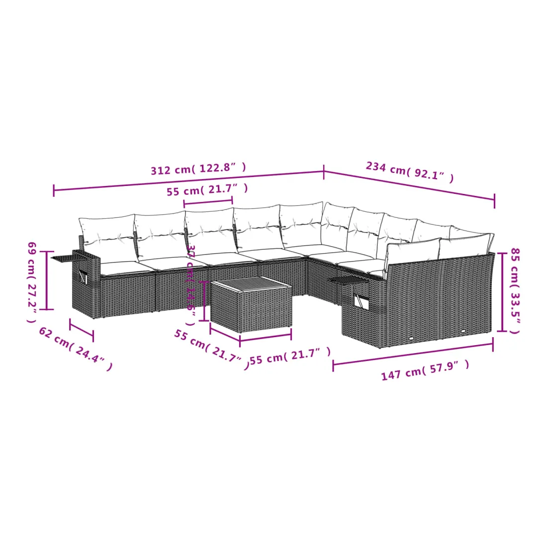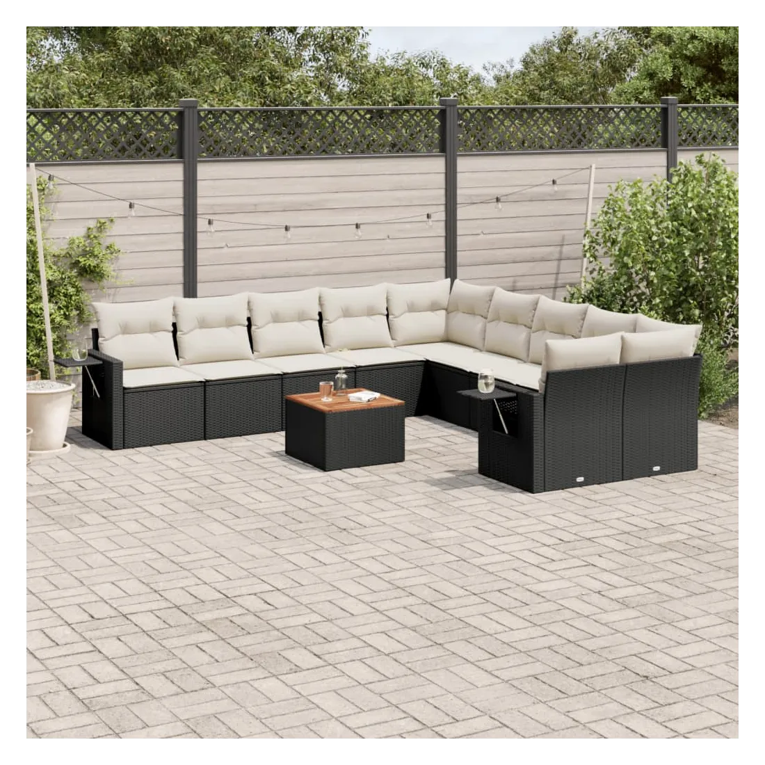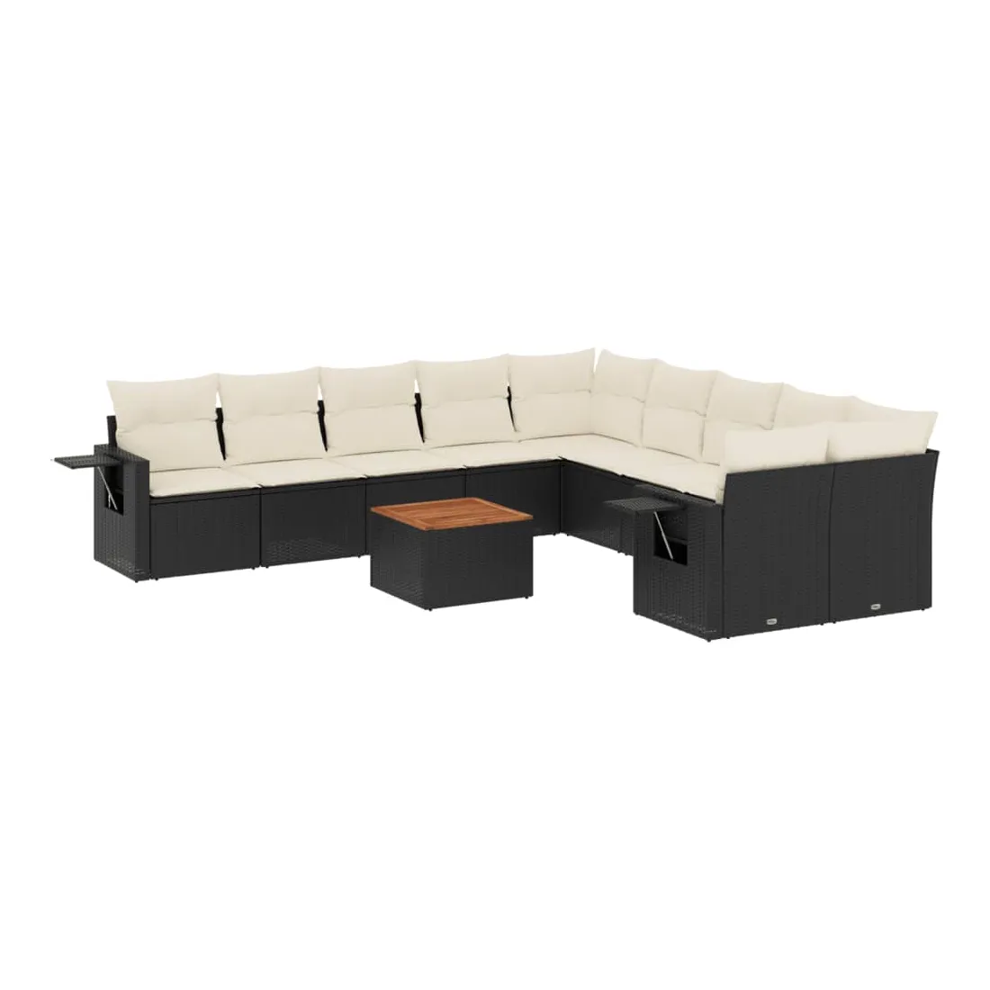 Salon de jardin 11 pcs avec coussins noir résine tressée