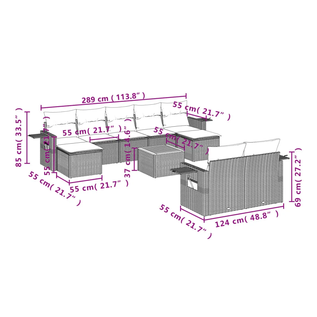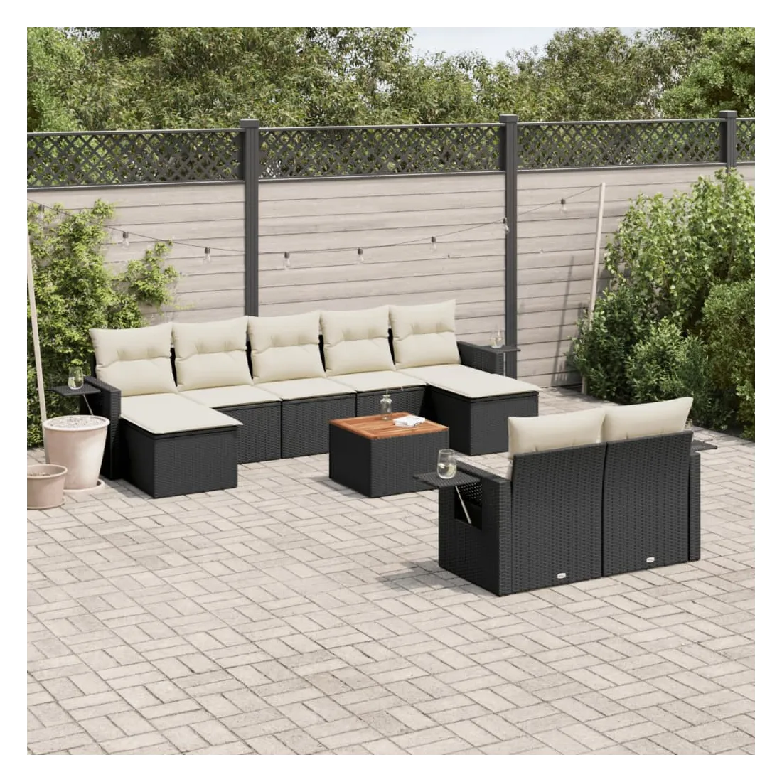 Cet ensemble de canapés de jardin est le complément parfait de votre arrière-cour, terrasse ou patio, offrant un espace confortable et accueillant pour discuter avec la famille et les amis ou simplement se détendre et profiter de l'extérieur. Matériau durable : la résine tressée, également connue sous le nom de poly rotin, est un matériau synthétique solide et nécessitant peu d'entretien qui ressemble au rotin naturel. Il est léger, facile à nettoyer et couramment utilisé pour les meubles d'extérieur en raison de sa durabilité et de ses propriétés de résistance aux intempéries.Fonction de rangement avec sac résistant à l'eau : chaque siège de jardin dispose d'un espace de rangement sous l'assise, complété par un sac résistant à l'eau pour ranger les coussins, les jouets et d'autres objets. Les sacs intérieurs sont dotés d'un couvercle et peuvent être solidement fixés aux sièges à l'aide de bandes auto-agrippantes pour plus de stabilité.Dessus stable et facile à nettoyer : cette table de jardin a un dessus en bois d'acacia robuste, durable et facile à nettoyer avec un chiffon humide.Table d'appoint pratique : ce mobilier d'extérieur comprend des tables d'appoint pliables avec un ressort à gaz sur les accoudoirs, offrant des endroits pratiques pour garder vos essentiels à portée de main.Conception modulaire : cet ensemble de meubles d'extérieur a une conception modulaire, ce qui le rend complètement flexible et facile à déplacer, afin que vous puissiez créer un agencement de meubles d'extérieur personnalisé. Bon à savoir :Pour que vos meubles d'extérieur restent beaux, nous vous recommandons de les protéger avec une housse imperméable.