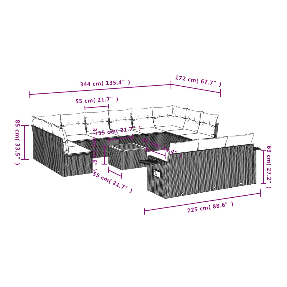 - Dimensions du coussin de dossier : 55 x 45 x 13 cm (L x l x é)