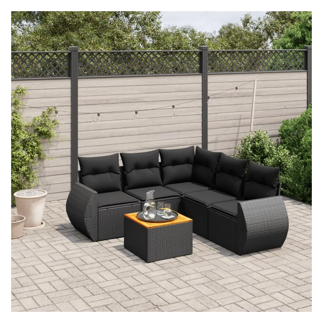 Salon de jardin 6 pcs avec coussins noir résine tressée