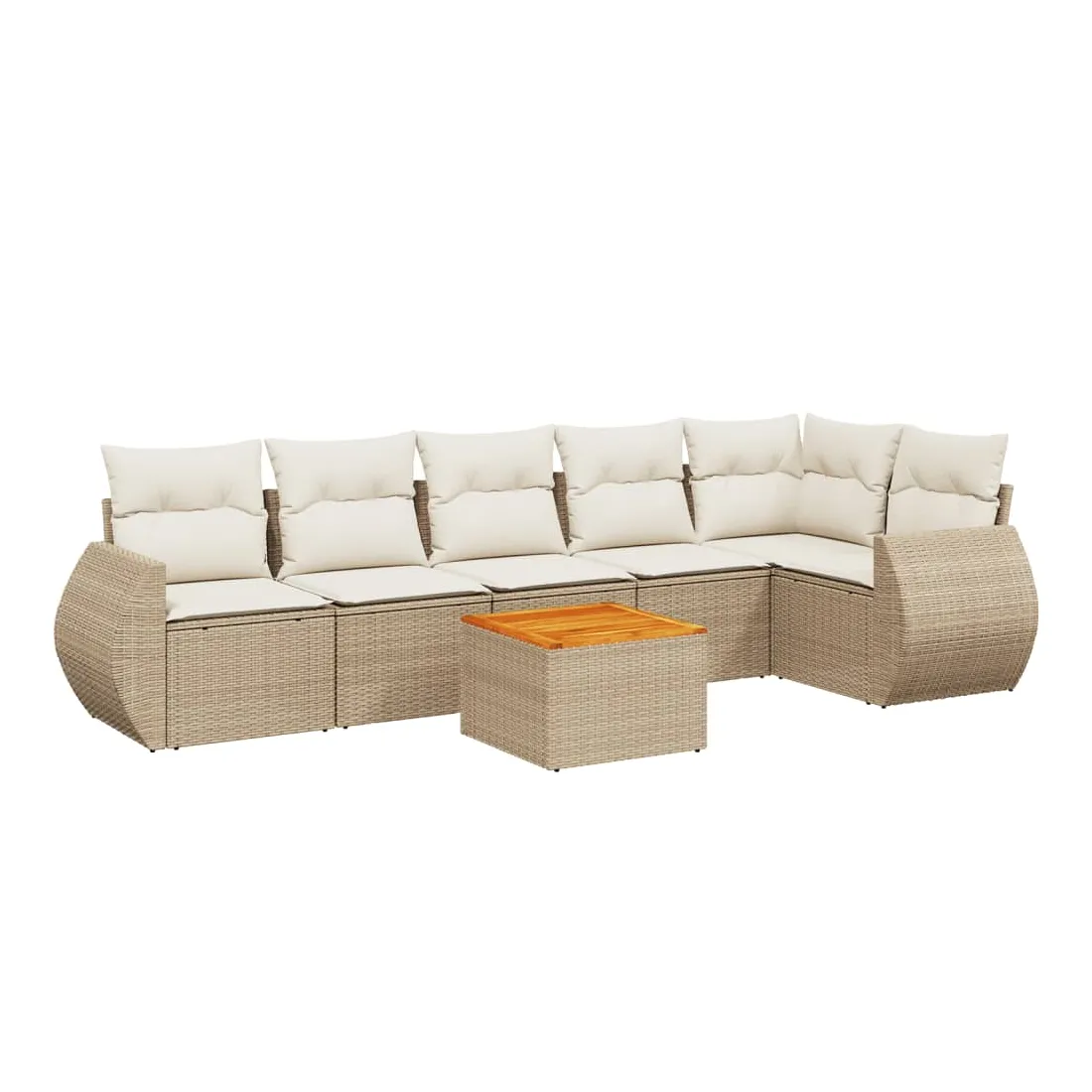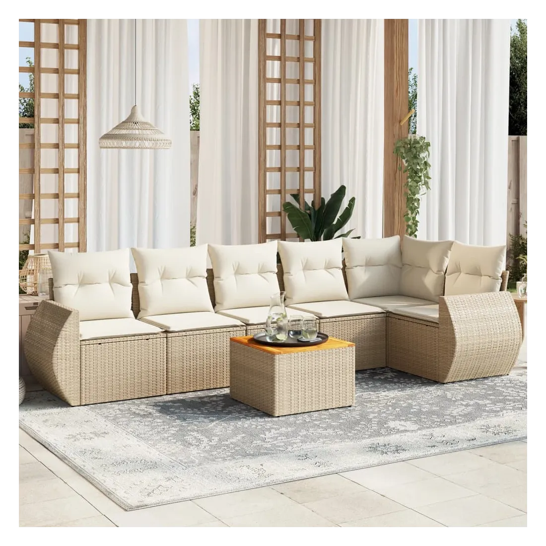 Salon de jardin avec coussins 7 pcs beige résine tressée