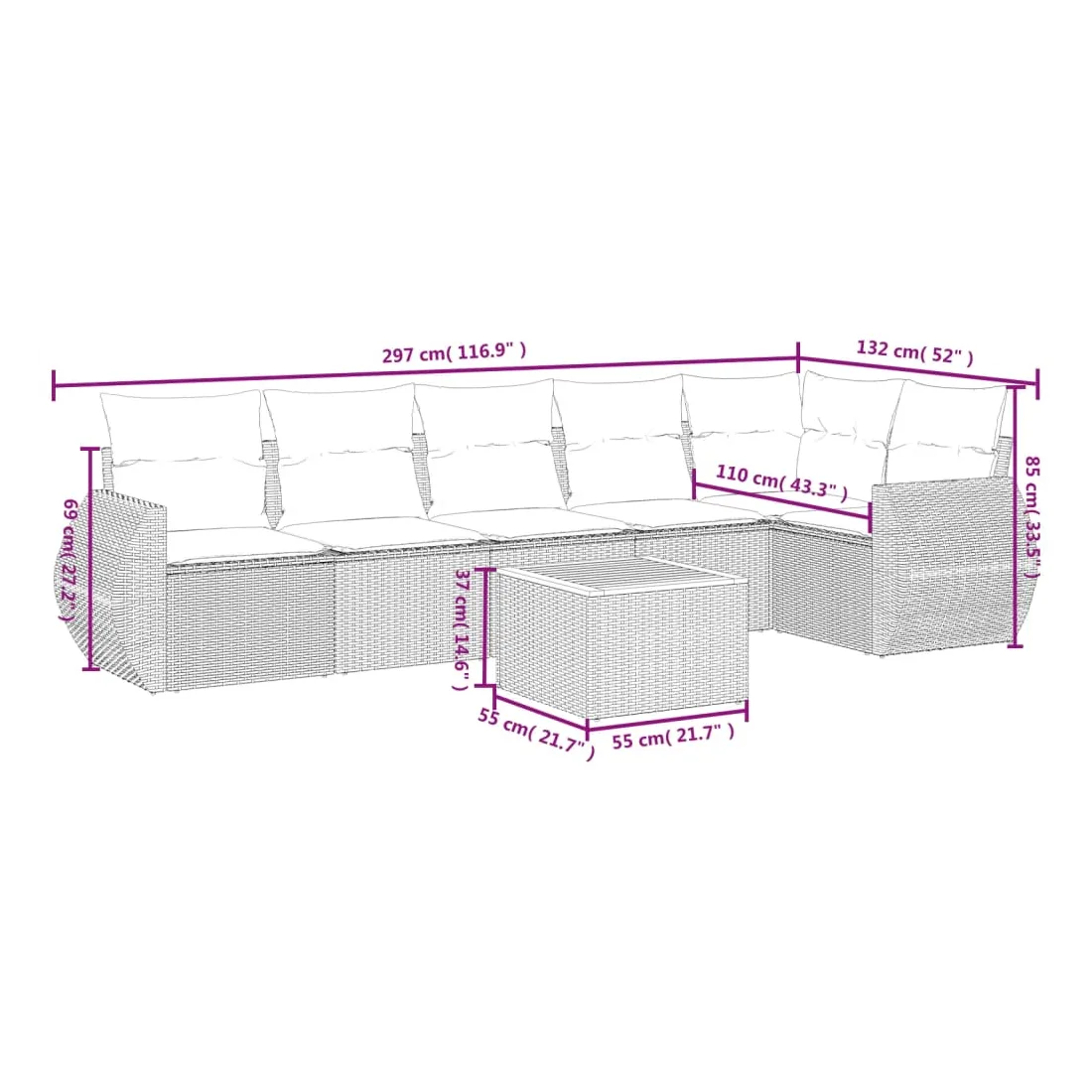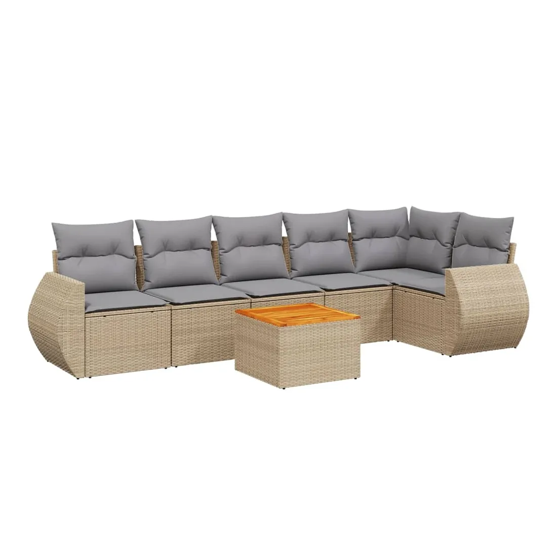 Cet ensemble de canapés de jardin est le complément parfait de votre arrière-cour, terrasse ou patio, offrant un espace confortable et accueillant pour discuter avec la famille et les amis ou simplement se détendre et profiter de l'extérieur. Matériau durable : la résine tressée, également connue sous le nom de poly rotin, est un matériau synthétique solide et nécessitant peu d'entretien qui ressemble au rotin naturel. Il est léger, facile à nettoyer et couramment utilisé pour les meubles d'extérieur en raison de sa durabilité et de ses propriétés de résistance aux intempéries.Dessus stable et facile à nettoyer : cette table de jardin a un dessus en bois d'acacia robuste, durable et facile à nettoyer avec un chiffon humide. Fonction de rangement avec sac résistant à l'eau : chaque siège de jardin dispose d'un espace de rangement sous l'assise, complété par un sac résistant à l'eau pour ranger les coussins, les jouets et d'autres objets. Les sacs intérieurs sont dotés d'un couvercle et peuvent être solidement fixés aux sièges à l'aide de bandes auto-agrippantes pour plus de stabilité.Expérience d'assise confortable : ce mobilier d'extérieur, doté de coussins épais, offre une expérience d'assise confortable.Conception modulaire : cet ensemble de meubles d'extérieur a une conception modulaire, ce qui le rend complètement flexible et facile à déplacer, afin que vous puissiez créer un agencement de meubles d'extérieur personnalisé. Bon à savoir :Pour que vos meubles d'extérieur restent beaux, nous vous recommandons de les protéger avec une housse imperméable.