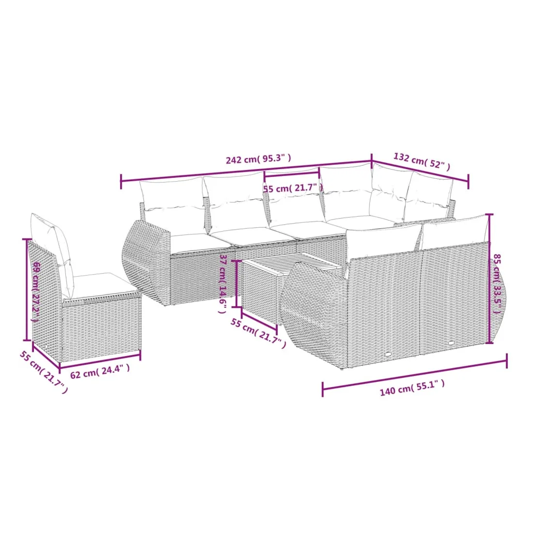 Cet ensemble de canapés de jardin est le complément parfait de votre arrière-cour, terrasse ou patio, offrant un espace confortable et accueillant pour discuter avec la famille et les amis ou simplement se détendre et profiter de l'extérieur. Matériau durable : la résine tressée, également connue sous le nom de poly rotin, est un matériau synthétique solide et nécessitant peu d'entretien qui ressemble au rotin naturel. Il est léger, facile à nettoyer et couramment utilisé pour les meubles d'extérieur en raison de sa durabilité et de ses propriétés de résistance aux intempéries.Dessus stable et facile à nettoyer : cette table de jardin a un dessus en bois d'acacia robuste, durable et facile à nettoyer avec un chiffon humide. Fonction de rangement avec sac résistant à l'eau : chaque siège de jardin dispose d'un espace de rangement sous l'assise, complété par un sac résistant à l'eau pour ranger les coussins, les jouets et d'autres objets. Les sacs intérieurs sont dotés d'un couvercle et peuvent être solidement fixés aux sièges à l'aide de bandes auto-agrippantes pour plus de stabilité.Expérience d'assise confortable : ce mobilier d'extérieur, doté de coussins épais, offre une expérience d'assise confortable.Conception modulaire : cet ensemble de meubles d'extérieur a une conception modulaire, ce qui le rend complètement flexible et facile à déplacer, afin que vous puissiez créer un agencement de meubles d'extérieur personnalisé. Bon à savoir :Pour que vos meubles d'extérieur restent beaux, nous vous recommandons de les protéger avec une housse imperméable.