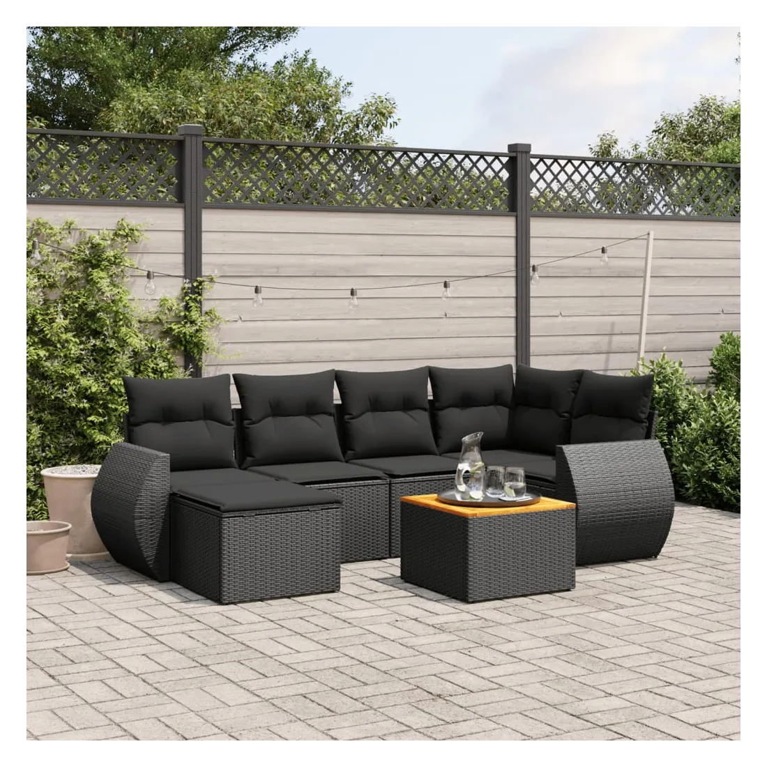 Cet ensemble de canapés de jardin est le complément parfait de votre arrière-cour, terrasse ou patio, offrant un espace confortable et accueillant pour discuter avec la famille et les amis ou simplement se détendre et profiter de l'extérieur. Matériau durable : la résine tressée, également connue sous le nom de poly rotin, est un matériau synthétique solide et nécessitant peu d'entretien qui ressemble au rotin naturel. Il est léger, facile à nettoyer et couramment utilisé pour les meubles d'extérieur en raison de sa durabilité et de ses propriétés de résistance aux intempéries.Dessus stable et facile à nettoyer : cette table de jardin a un dessus en bois d'acacia robuste, durable et facile à nettoyer avec un chiffon humide. Fonction de rangement avec sac résistant à l'eau : chaque siège de jardin dispose d'un espace de rangement sous l'assise, complété par un sac résistant à l'eau pour ranger les coussins, les jouets et d'autres objets. Les sacs intérieurs sont dotés d'un couvercle et peuvent être solidement fixés aux sièges à l'aide de bandes auto-agrippantes pour plus de stabilité.Expérience d'assise confortable : ce mobilier d'extérieur, doté de coussins épais, offre une expérience d'assise confortable.Conception modulaire : cet ensemble de meubles d'extérieur a une conception modulaire, ce qui le rend complètement flexible et facile à déplacer, afin que vous puissiez créer un agencement de meubles d'extérieur personnalisé. Bon à savoir :Pour que vos meubles d'extérieur restent beaux, nous vous recommandons de les protéger avec une housse imperméable.