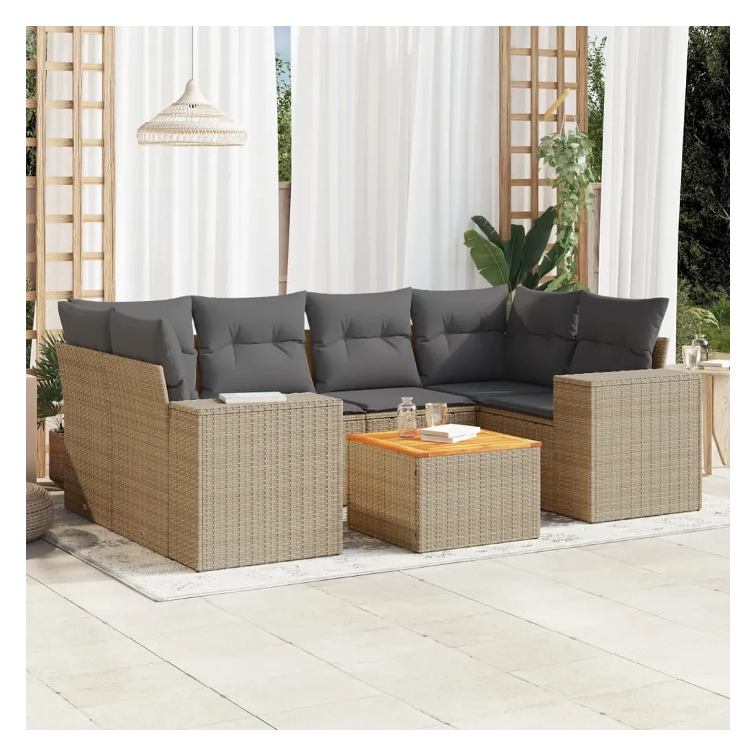 Cet ensemble de canapés de jardin est le complément parfait de votre arrière-cour, terrasse ou patio, offrant un espace confortable et accueillant pour discuter avec la famille et les amis ou simplement se détendre et profiter de l'extérieur. Matériau durable : la résine tressée, également connue sous le nom de poly rotin, est un matériau synthétique solide et nécessitant peu d'entretien qui ressemble au rotin naturel. Il est léger, facile à nettoyer et couramment utilisé pour les meubles d'extérieur en raison de sa durabilité et de ses propriétés de résistance aux intempéries.Dessus stable et facile à nettoyer : cette table de jardin a un dessus en bois d'acacia robuste, durable et facile à nettoyer avec un chiffon humide. Fonction de rangement avec sac résistant à l'eau : chaque siège de jardin dispose d'un espace de rangement sous l'assise, complété par un sac résistant à l'eau pour ranger les coussins, les jouets et d'autres objets. Les sacs intérieurs sont dotés d'un couvercle et peuvent être solidement fixés aux sièges à l'aide de bandes auto-agrippantes pour plus de stabilité.Expérience d'assise confortable : ce mobilier d'extérieur, doté de coussins épais, offre une expérience d'assise confortable.Conception modulaire : cet ensemble de meubles d'extérieur a une conception modulaire, ce qui le rend complètement flexible et facile à déplacer, afin que vous puissiez créer un agencement de meubles d'extérieur personnalisé. Bon à savoir :Pour que vos meubles d'extérieur restent beaux, nous vous recommandons de les protéger avec une housse imperméable.