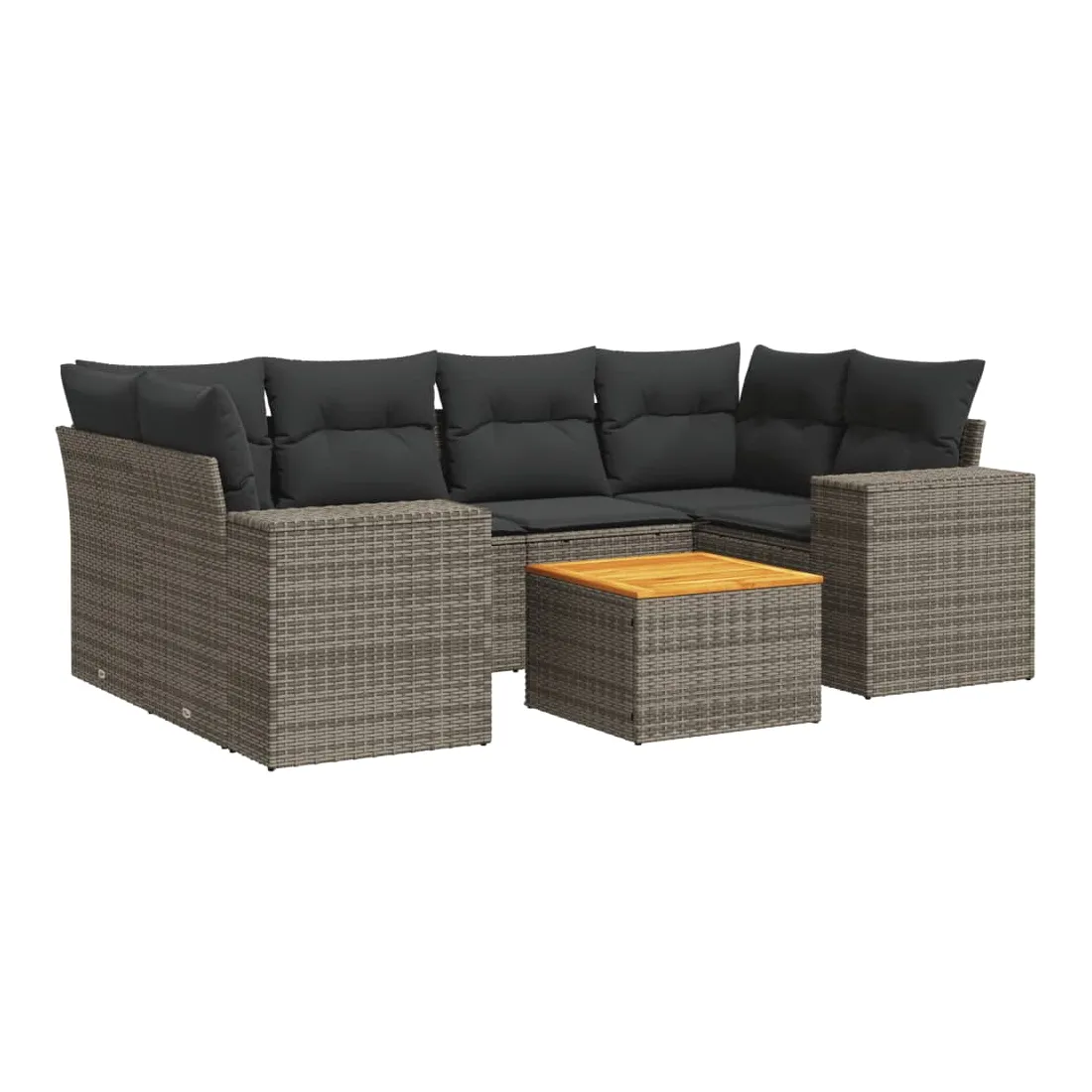 Cet ensemble de canapés de jardin est le complément parfait de votre arrière-cour, terrasse ou patio, offrant un espace confortable et accueillant pour discuter avec la famille et les amis ou simplement se détendre et profiter de l'extérieur. Matériau durable : la résine tressée, également connue sous le nom de poly rotin, est un matériau synthétique solide et nécessitant peu d'entretien qui ressemble au rotin naturel. Il est léger, facile à nettoyer et couramment utilisé pour les meubles d'extérieur en raison de sa durabilité et de ses propriétés de résistance aux intempéries.Dessus stable et facile à nettoyer : cette table de jardin a un dessus en bois d'acacia robuste, durable et facile à nettoyer avec un chiffon humide. Fonction de rangement avec sac résistant à l'eau : chaque siège de jardin dispose d'un espace de rangement sous l'assise, complété par un sac résistant à l'eau pour ranger les coussins, les jouets et d'autres objets. Les sacs intérieurs sont dotés d'un couvercle et peuvent être solidement fixés aux sièges à l'aide de bandes auto-agrippantes pour plus de stabilité.Expérience d'assise confortable : ce mobilier d'extérieur, doté de coussins épais, offre une expérience d'assise confortable.Conception modulaire : cet ensemble de meubles d'extérieur a une conception modulaire, ce qui le rend complètement flexible et facile à déplacer, afin que vous puissiez créer un agencement de meubles d'extérieur personnalisé. Bon à savoir :Pour que vos meubles d'extérieur restent beaux, nous vous recommandons de les protéger avec une housse imperméable.