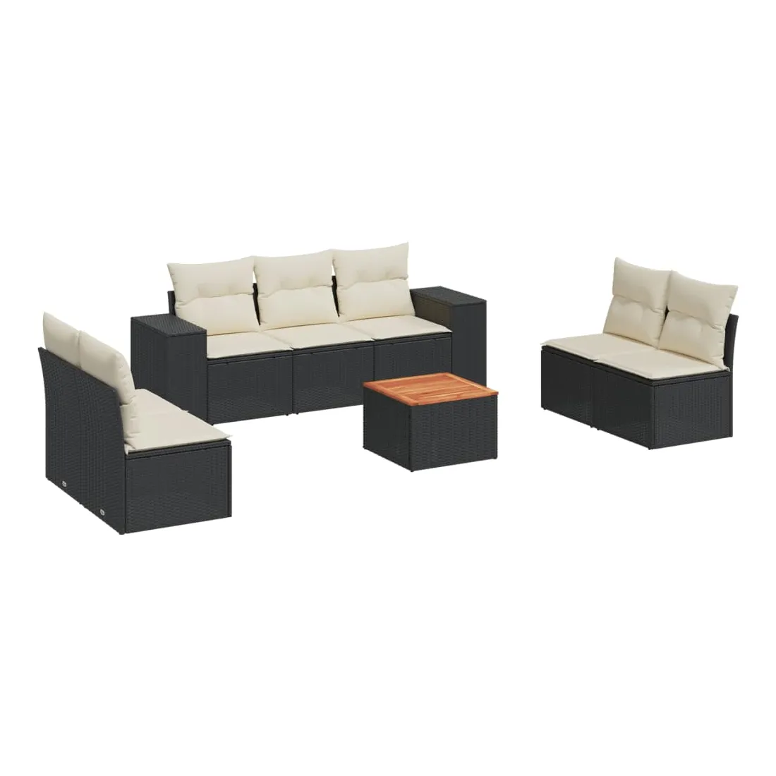Cet ensemble de canapés de jardin est le complément parfait de votre arrière-cour, terrasse ou patio, offrant un espace confortable et accueillant pour discuter avec la famille et les amis ou simplement se détendre et profiter de l'extérieur. Matériau durable : la résine tressée, également connue sous le nom de poly rotin, est un matériau synthétique solide et nécessitant peu d'entretien qui ressemble au rotin naturel. Il est léger, facile à nettoyer et couramment utilisé pour les meubles d'extérieur en raison de sa durabilité et de ses propriétés de résistance aux intempéries. Fonction de rangement avec sac résistant à l'eau : chaque siège de jardin dispose d'un espace de rangement sous l'assise, complété par un sac résistant à l'eau pour ranger les coussins, les jouets et d'autres objets. Les sacs intérieurs sont dotés d'un couvercle et peuvent être solidement fixés aux sièges à l'aide de bandes auto-agrippantes pour plus de stabilité. Dessus stable et facile à nettoyer : cette table de jardin a un dessus en bois d'acacia robuste, durable et facile à nettoyer avec un chiffon humide. Expérience d'assise confortable : ce mobilier d'extérieur, doté de coussins épais, offre une expérience d'assise confortable. Conception modulaire : cet ensemble de meubles d'extérieur a une conception modulaire, ce qui le rend complètement flexible et facile à déplacer, afin que vous puissiez créer un agencement de meubles d'extérieur personnalisé. Bon à savoir :Pour que vos meubles d'extérieur restent beaux, nous vous recommandons de les protéger avec une housse imperméable.