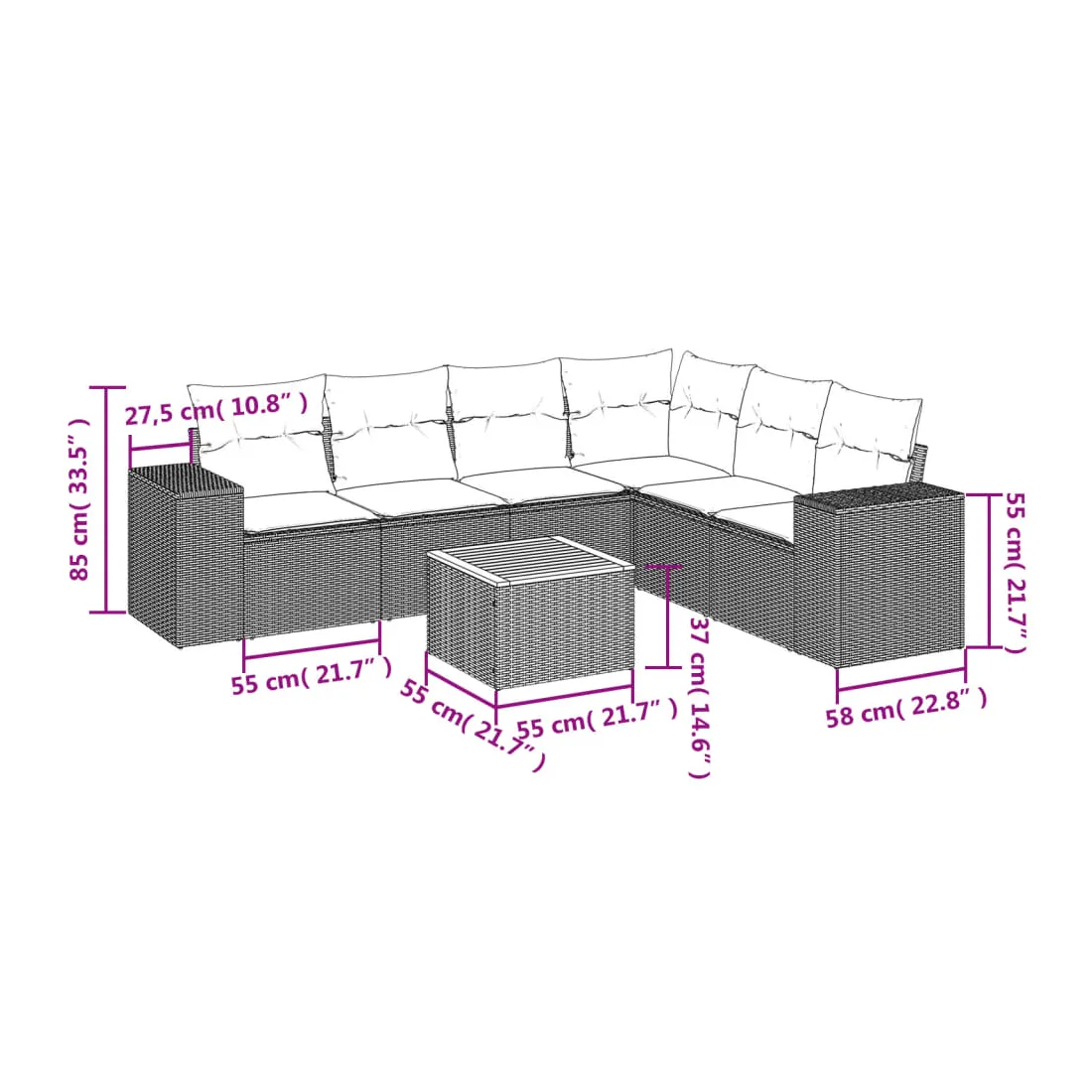 - Dimensions : 55 x 55 x 37 cm (L x l x H)