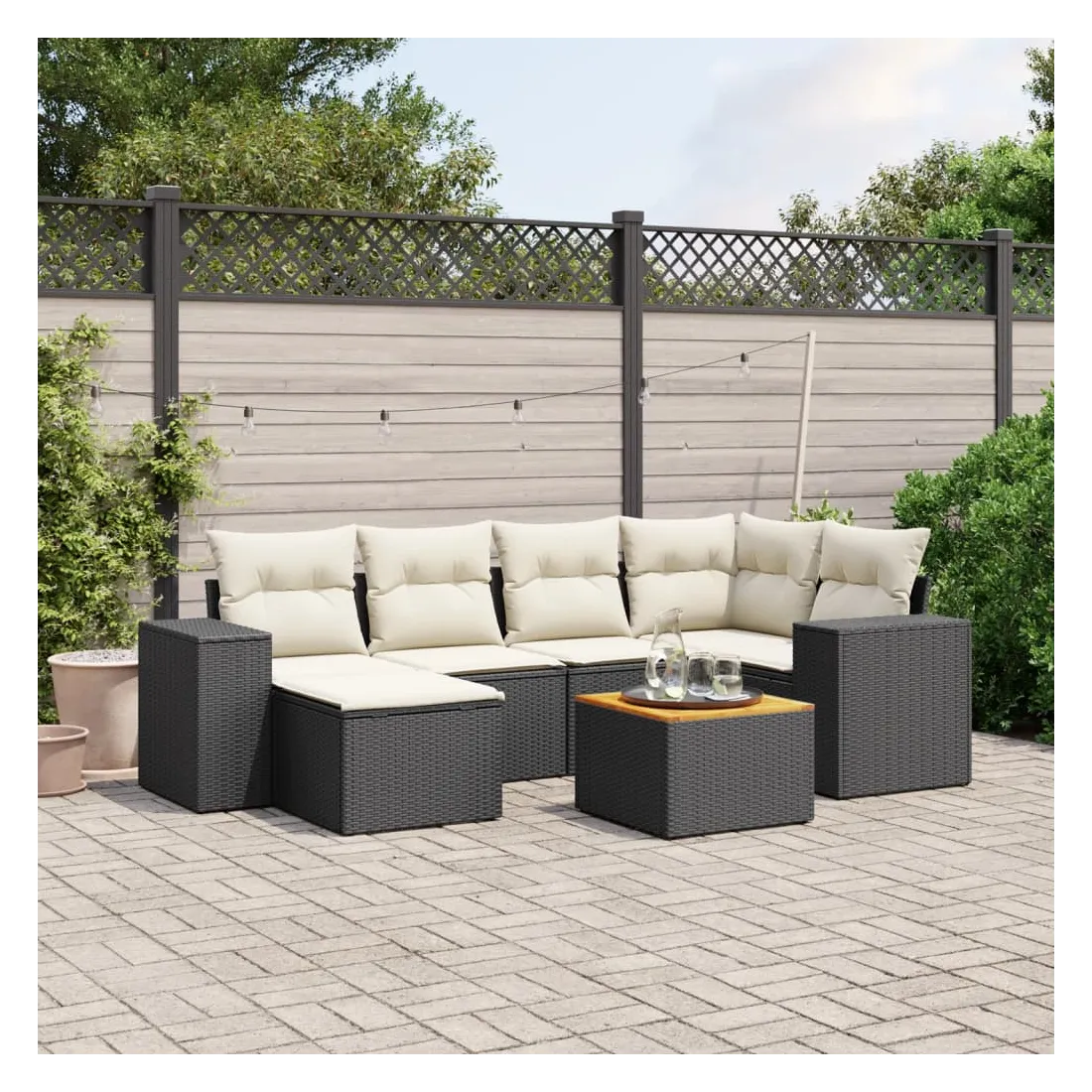 Cet ensemble de canapés de jardin est le complément parfait de votre arrière-cour, terrasse ou patio, offrant un espace confortable et accueillant pour discuter avec la famille et les amis ou simplement se détendre et profiter de l'extérieur. Matériau durable : la résine tressée, également connue sous le nom de poly rotin, est un matériau synthétique solide et nécessitant peu d'entretien qui ressemble au rotin naturel. Il est léger, facile à nettoyer et couramment utilisé pour les meubles d'extérieur en raison de sa durabilité et de ses propriétés de résistance aux intempéries.Dessus stable et facile à nettoyer : cette table de jardin a un dessus en bois d'acacia robuste, durable et facile à nettoyer avec un chiffon humide. Fonction de rangement avec sac résistant à l'eau : chaque siège de jardin dispose d'un espace de rangement sous l'assise, complété par un sac résistant à l'eau pour ranger les coussins, les jouets et d'autres objets. Les sacs intérieurs sont dotés d'un couvercle et peuvent être solidement fixés aux sièges à l'aide de bandes auto-agrippantes pour plus de stabilité.Expérience d'assise confortable : ce mobilier d'extérieur, doté de coussins épais, offre une expérience d'assise confortable.Conception modulaire : cet ensemble de meubles d'extérieur a une conception modulaire, ce qui le rend complètement flexible et facile à déplacer, afin que vous puissiez créer un agencement de meubles d'extérieur personnalisé. Bon à savoir :Pour que vos meubles d'extérieur restent beaux, nous vous recommandons de les protéger avec une housse imperméable.