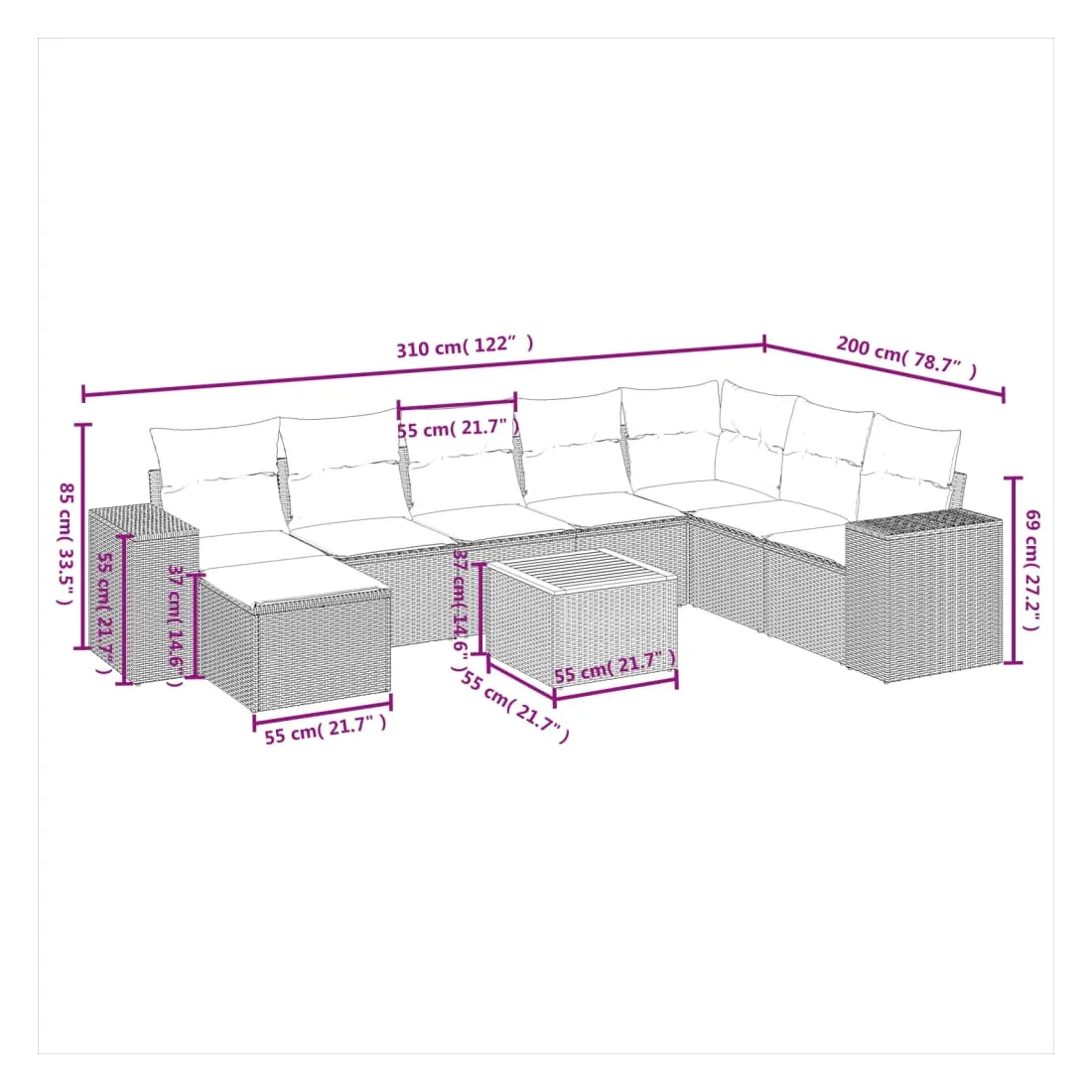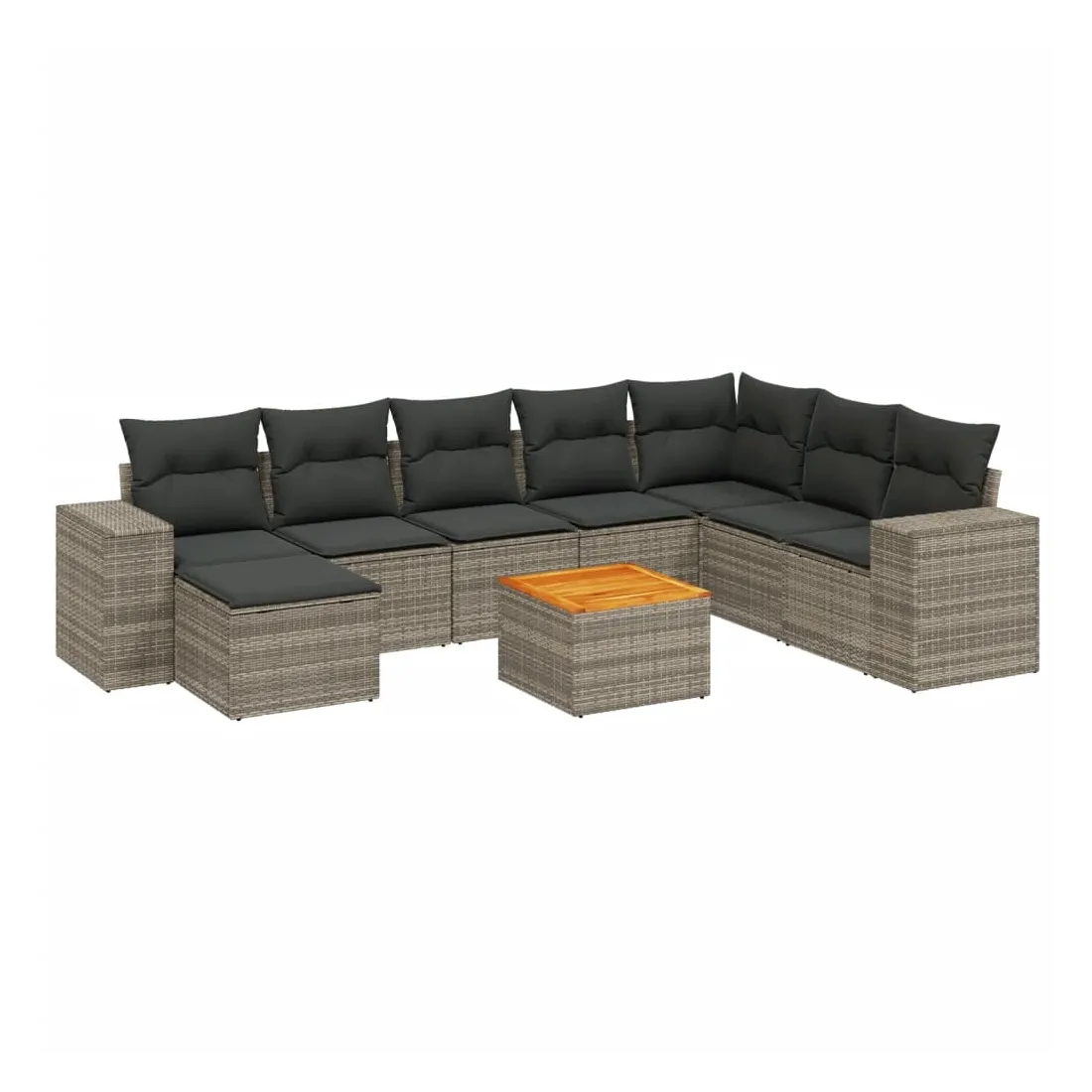 Cet ensemble de canapés de jardin est le complément parfait de votre arrière-cour, terrasse ou patio, offrant un espace confortable et accueillant pour discuter avec la famille et les amis ou simplement se détendre et profiter de l'extérieur. Matériau durable : la résine tressée, également connue sous le nom de poly rotin, est un matériau synthétique solide et nécessitant peu d'entretien qui ressemble au rotin naturel. Il est léger, facile à nettoyer et couramment utilisé pour les meubles d'extérieur en raison de sa durabilité et de ses propriétés de résistance aux intempéries.Dessus stable et facile à nettoyer : cette table de jardin a un dessus en bois d'acacia robuste, durable et facile à nettoyer avec un chiffon humide. Fonction de rangement avec sac résistant à l'eau : chaque siège de jardin dispose d'un espace de rangement sous l'assise, complété par un sac résistant à l'eau pour ranger les coussins, les jouets et d'autres objets. Les sacs intérieurs sont dotés d'un couvercle et peuvent être solidement fixés aux sièges à l'aide de bandes auto-agrippantes pour plus de stabilité.Expérience d'assise confortable : ce mobilier d'extérieur, doté de coussins épais, offre une expérience d'assise confortable.Conception modulaire : cet ensemble de meubles d'extérieur a une conception modulaire, ce qui le rend complètement flexible et facile à déplacer, afin que vous puissiez créer un agencement de meubles d'extérieur personnalisé. Bon à savoir :Pour que vos meubles d'extérieur restent beaux, nous vous recommandons de les protéger avec une housse imperméable.