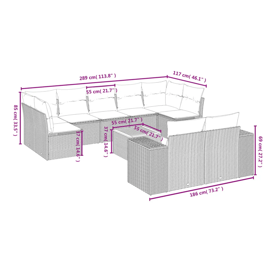 Salon de jardin 10 pcs avec coussins noir résine tressée