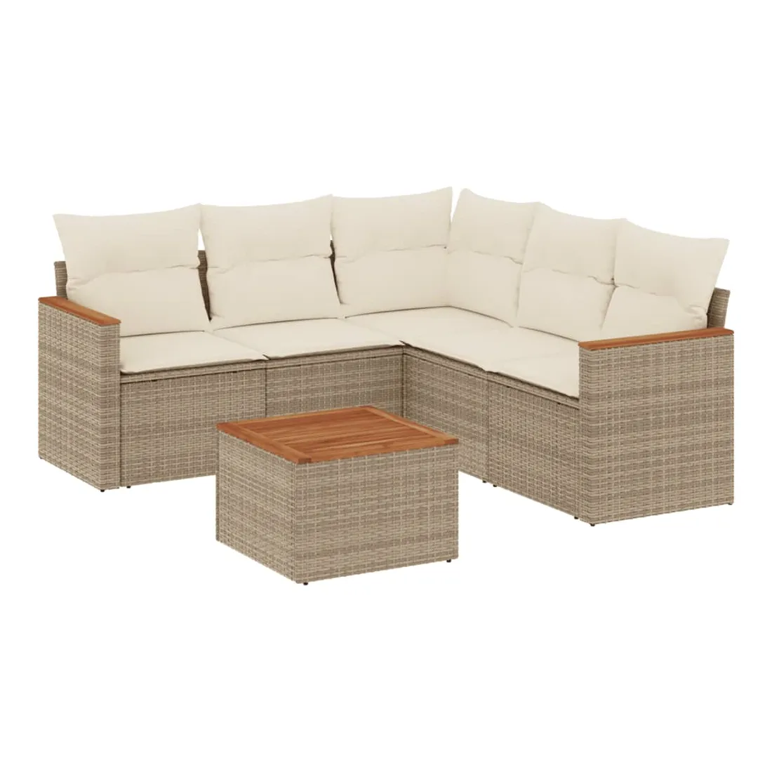 Salon de jardin avec coussins 6 pcs beige résine tressée