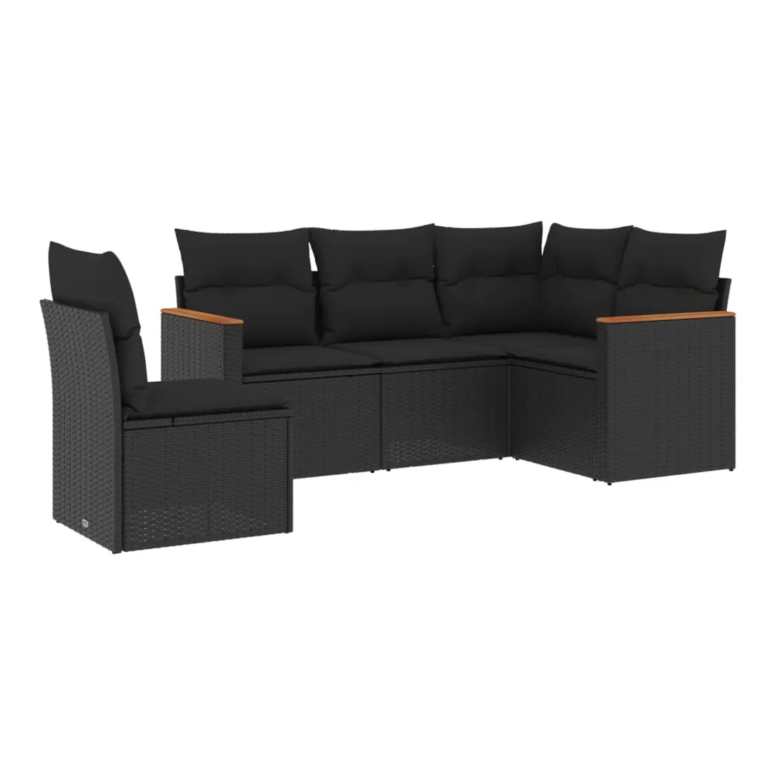 Salon de jardin 5 pcs avec coussins noir résine tressée