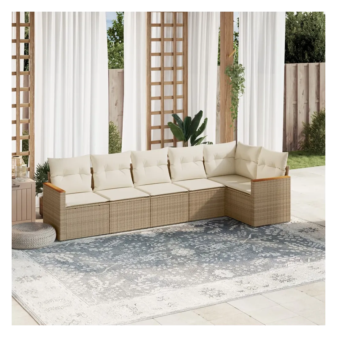 Cet ensemble de canapés de jardin est le complément parfait de votre arrière-cour, terrasse ou patio, offrant un espace confortable et accueillant pour discuter avec la famille et les amis ou simplement se détendre et profiter de l'extérieur. Matériau durable : la résine tressée, également connue sous le nom de poly rotin, est un matériau synthétique solide et nécessitant peu d'entretien qui ressemble au rotin naturel. Il est léger, facile à nettoyer et couramment utilisé pour les meubles d'extérieur en raison de sa durabilité et de ses propriétés de résistance aux intempéries.Fonction de rangement avec sac résistant à l'eau : le mobilier de jardin dispose d'un espace de rangement sous l'assise, complété par un sac résistant à l'eau pour ranger coussins, jouets et autres objets. Le sac intérieur peut être solidement fixé au mobilier d'extérieur grâce à des attaches auto-agrippantes pour plus de stabilité.Housse amovible et lavable : ces coussins de siège sont dotés de housses amovibles pour un lavage et un entretien faciles.Conception modulaire : cet ensemble de meubles d'extérieur a une conception modulaire, ce qui le rend complètement flexible et facile à déplacer, afin que vous puissiez créer un agencement de meubles d'extérieur personnalisé. Bon à savoir :Pour que vos meubles d'extérieur restent beaux, nous vous recommandons de les protéger avec une housse imperméable.