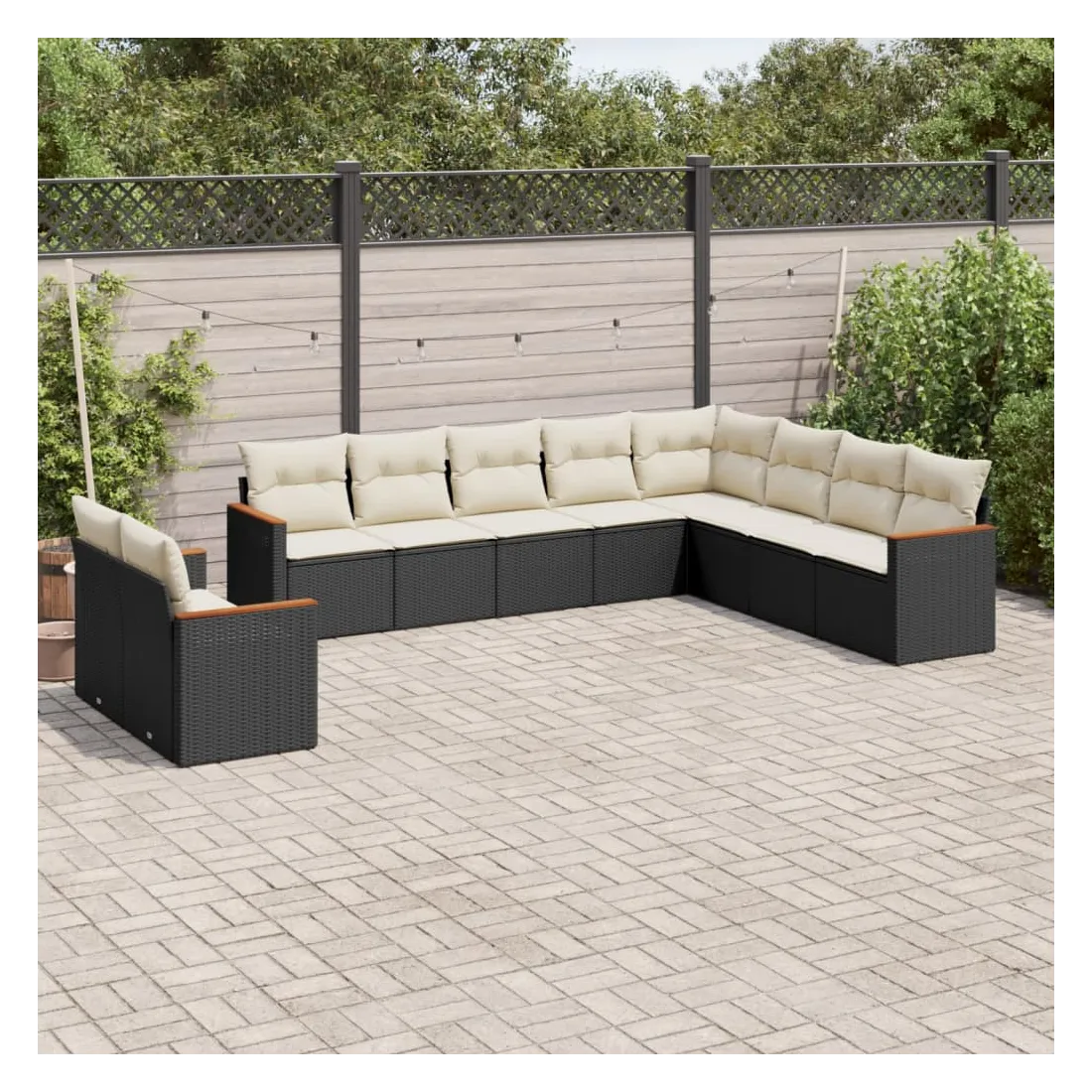 Cet ensemble de canapés de jardin est le complément parfait de votre arrière-cour, terrasse ou patio, offrant un espace confortable et accueillant pour discuter avec la famille et les amis ou simplement se détendre et profiter de l'extérieur. Matériau durable : la résine tressée, également connue sous le nom de poly rotin, est un matériau synthétique solide et nécessitant peu d'entretien qui ressemble au rotin naturel. Il est léger, facile à nettoyer et couramment utilisé pour les meubles d'extérieur en raison de sa durabilité et de ses propriétés de résistance aux intempéries.Fonction de rangement avec sac résistant à l'eau : le mobilier de jardin dispose d'un espace de rangement sous l'assise, complété par un sac résistant à l'eau pour ranger coussins, jouets et autres objets. Le sac intérieur peut être solidement fixé au mobilier d'extérieur grâce à des attaches auto-agrippantes pour plus de stabilité.Housse amovible et lavable : ces coussins de siège sont dotés de housses amovibles pour un lavage et un entretien faciles.Conception modulaire : cet ensemble de meubles d'extérieur a une conception modulaire, ce qui le rend complètement flexible et facile à déplacer, afin que vous puissiez créer un agencement de meubles d'extérieur personnalisé. Bon à savoir :Pour que vos meubles d'extérieur restent beaux, nous vous recommandons de les protéger avec une housse imperméable.