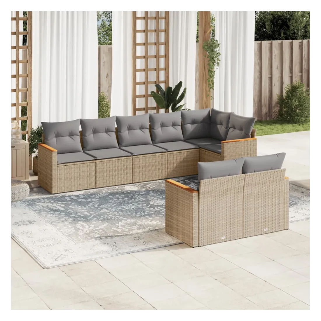 Cet ensemble de canapés de jardin est le complément parfait de votre arrière-cour, terrasse ou patio, offrant un espace confortable et accueillant pour discuter avec la famille et les amis ou simplement se détendre et profiter de l'extérieur. Matériau durable : la résine tressée, également connue sous le nom de poly rotin, est un matériau synthétique solide et nécessitant peu d'entretien qui ressemble au rotin naturel. Il est léger, facile à nettoyer et couramment utilisé pour les meubles d'extérieur en raison de sa durabilité et de ses propriétés de résistance aux intempéries.Fonction de rangement avec sac résistant à l'eau : le mobilier de jardin dispose d'un espace de rangement sous l'assise, complété par un sac résistant à l'eau pour ranger coussins, jouets et autres objets. Le sac intérieur peut être solidement fixé au mobilier d'extérieur grâce à des attaches auto-agrippantes pour plus de stabilité.Housse amovible et lavable : ces coussins de siège sont dotés de housses amovibles pour un lavage et un entretien faciles.Conception modulaire : cet ensemble de meubles d'extérieur a une conception modulaire, ce qui le rend complètement flexible et facile à déplacer, afin que vous puissiez créer un agencement de meubles d'extérieur personnalisé. Bon à savoir :Pour que vos meubles d'extérieur restent beaux, nous vous recommandons de les protéger avec une housse imperméable.