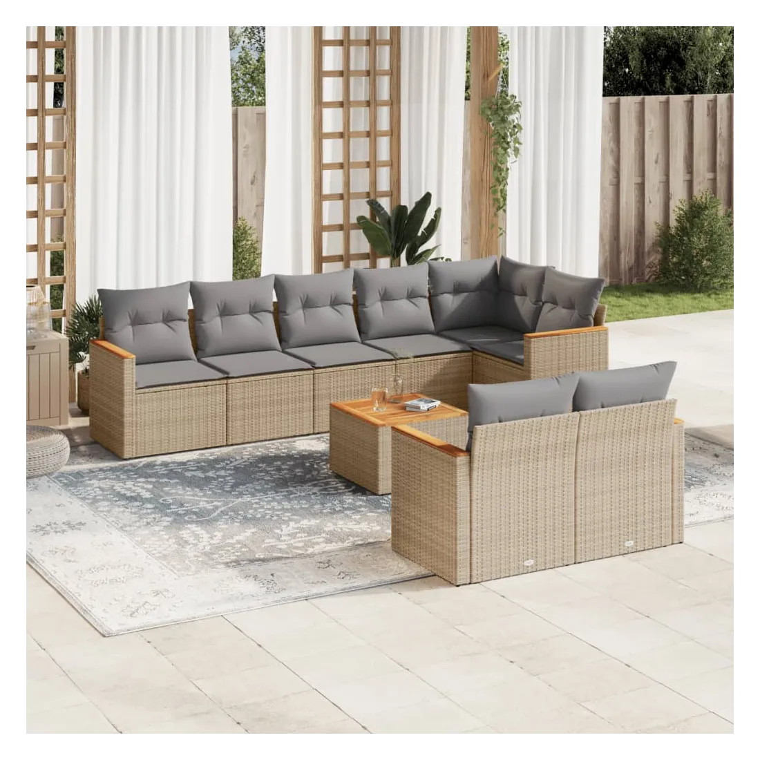Cet ensemble de canapés de jardin est le complément parfait de votre arrière-cour, terrasse ou patio, offrant un espace confortable et accueillant pour discuter avec la famille et les amis ou simplement se détendre et profiter de l'extérieur. Matériau durable : la résine tressée, également connue sous le nom de poly rotin, est un matériau synthétique solide et nécessitant peu d'entretien qui ressemble au rotin naturel. Il est léger, facile à nettoyer et couramment utilisé pour les meubles d'extérieur en raison de sa durabilité et de ses propriétés de résistance aux intempéries.Fonction de rangement avec sac résistant à l'eau : le mobilier de jardin dispose d'un espace de rangement sous l'assise, complété par un sac résistant à l'eau pour ranger coussins, jouets et autres objets. Le sac intérieur peut être solidement fixé au mobilier d'extérieur grâce à des attaches auto-agrippantes pour plus de stabilité.Dessus stable et facile à nettoyer : cette table de jardin a un dessus en bois d'acacia robuste, durable et facile à nettoyer avec un chiffon humide.Housse amovible et lavable : ces coussins de siège sont dotés de housses amovibles pour un lavage et un entretien faciles.Conception modulaire : cet ensemble de meubles d'extérieur a une conception modulaire, ce qui le rend complètement flexible et facile à déplacer, afin que vous puissiez créer un agencement de meubles d'extérieur personnalisé. Bon à savoir :Pour que vos meubles d'extérieur restent beaux, nous vous recommandons de les protéger avec une housse imperméable.