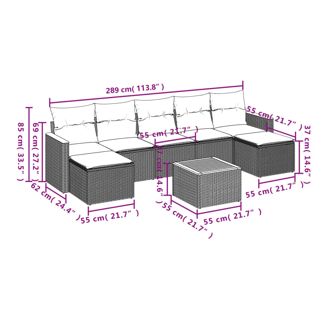 - 7 x coussin de siège avec housse amovible et lavable