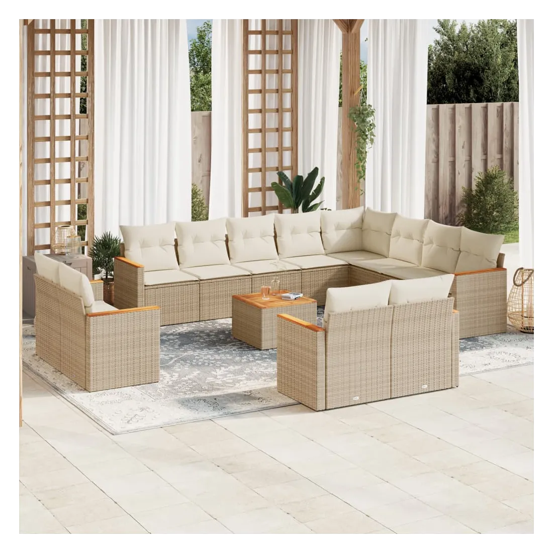Cet ensemble de canapés de jardin est le complément parfait de votre arrière-cour, terrasse ou patio, offrant un espace confortable et accueillant pour discuter avec la famille et les amis ou simplement se détendre et profiter de l'extérieur. Matériau durable : la résine tressée, également connue sous le nom de poly rotin, est un matériau synthétique solide et nécessitant peu d'entretien qui ressemble au rotin naturel. Il est léger, facile à nettoyer et couramment utilisé pour les meubles d'extérieur en raison de sa durabilité et de ses propriétés de résistance aux intempéries.Fonction de rangement avec sac résistant à l'eau : le mobilier de jardin dispose d'un espace de rangement sous l'assise, complété par un sac résistant à l'eau pour ranger coussins, jouets et autres objets. Le sac intérieur peut être solidement fixé au mobilier d'extérieur grâce à des attaches auto-agrippantes pour plus de stabilité.Dessus stable et facile à nettoyer : cette table de jardin a un dessus en bois d'acacia robuste, durable et facile à nettoyer avec un chiffon humide.Housse amovible et lavable : ces coussins de siège sont dotés de housses amovibles pour un lavage et un entretien faciles.Conception modulaire : cet ensemble de meubles d'extérieur a une conception modulaire, ce qui le rend complètement flexible et facile à déplacer, afin que vous puissiez créer un agencement de meubles d'extérieur personnalisé. Bon à savoir :Pour que vos meubles d'extérieur restent beaux, nous vous recommandons de les protéger avec une housse imperméable.