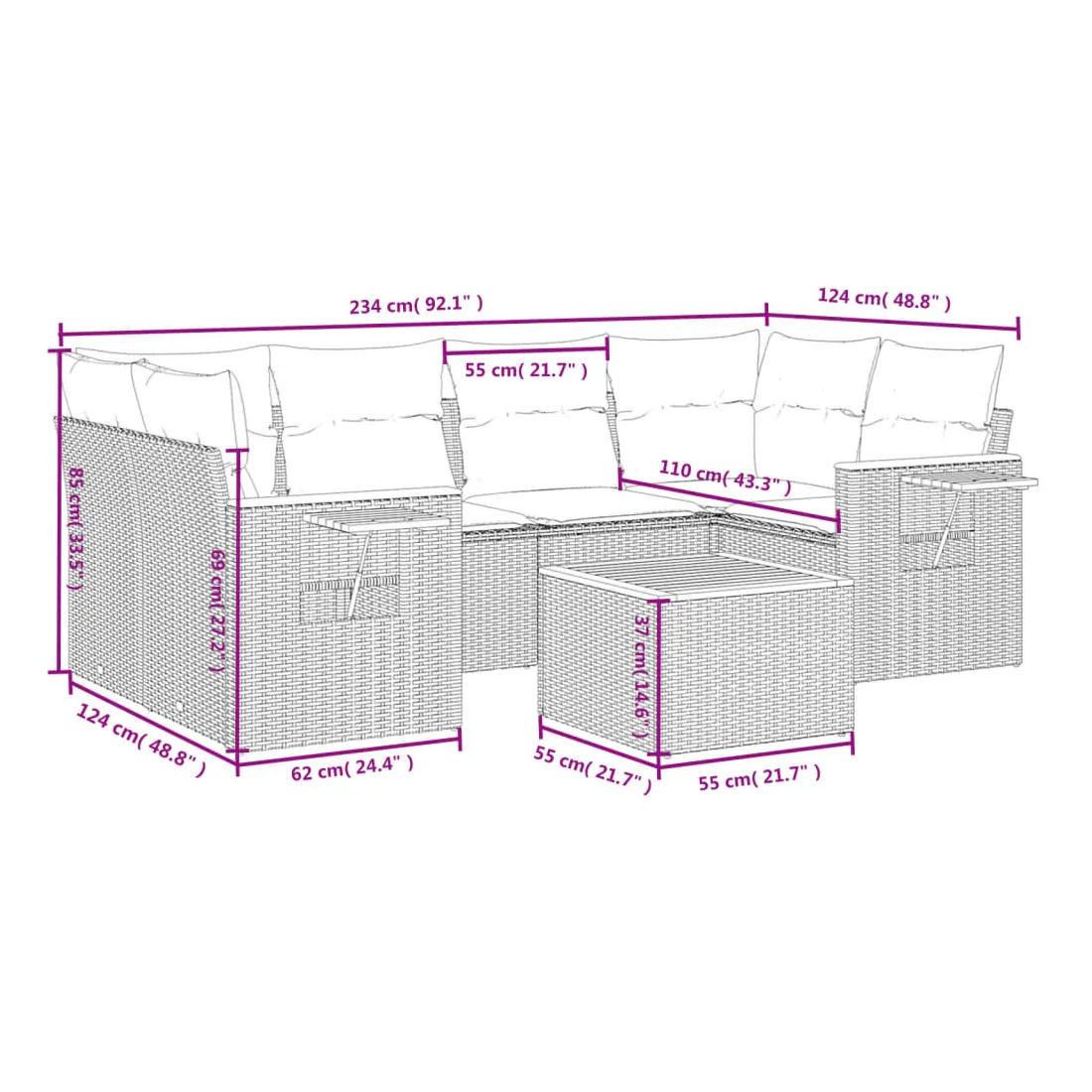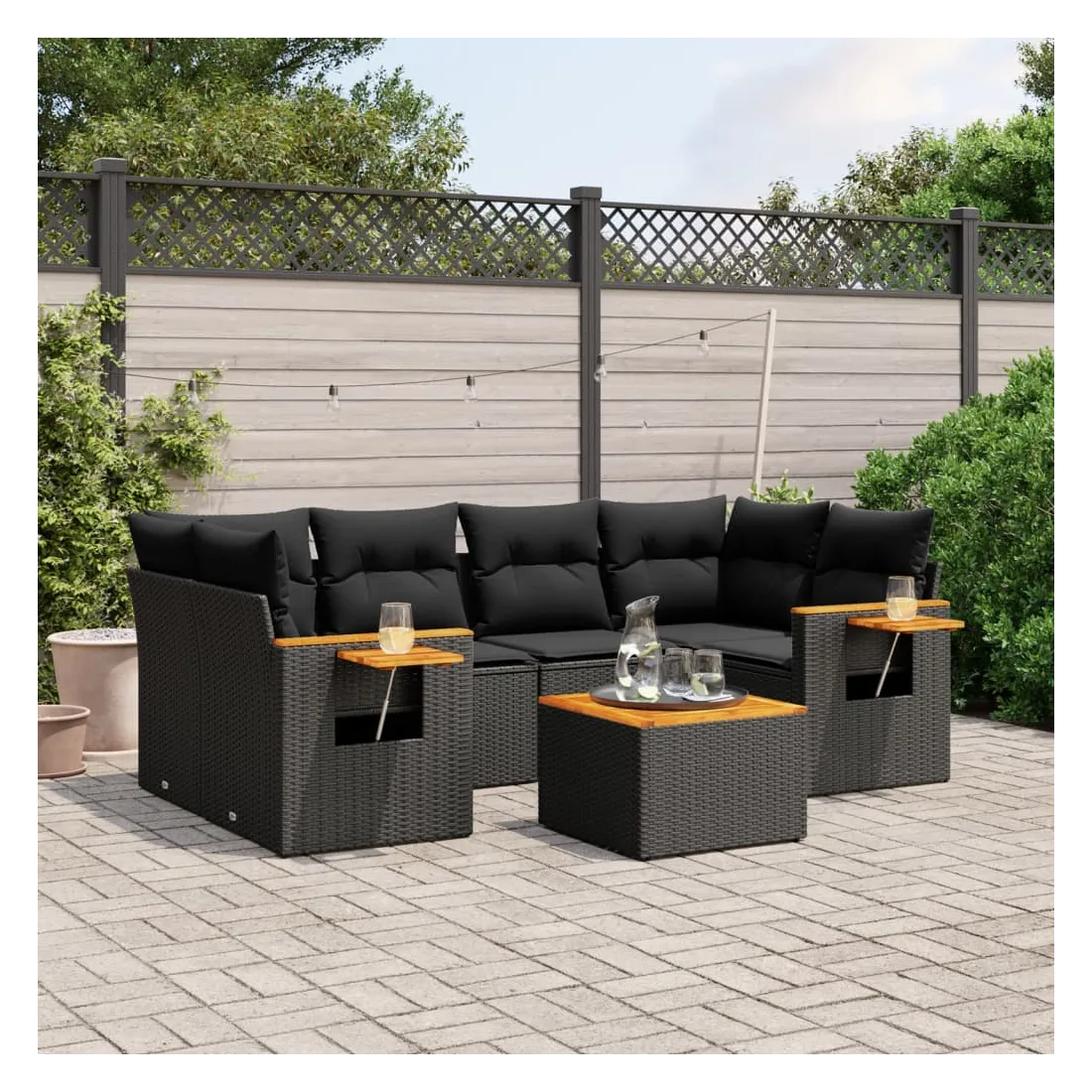 Cet ensemble de canapés de jardin est le complément parfait de votre arrière-cour, terrasse ou patio, offrant un espace confortable et accueillant pour discuter avec la famille et les amis ou simplement se détendre et profiter de l'extérieur. Matériau durable : la résine tressée, également connue sous le nom de poly rotin, est un matériau synthétique solide et nécessitant peu d'entretien qui ressemble au rotin naturel. Il est léger, facile à nettoyer et couramment utilisé pour les meubles d'extérieur en raison de sa durabilité et de ses propriétés de résistance aux intempéries.Fonction de rangement avec sac résistant à l'eau : le mobilier de jardin dispose d'un espace de rangement sous l'assise, complété par un sac résistant à l'eau pour ranger coussins, jouets et autres objets. Le sac intérieur peut être solidement fixé au mobilier d'extérieur grâce à des attaches auto-agrippantes pour plus de stabilité.Table d'appoint pratique : ce mobilier d'extérieur comprend une table d'appoint pliable avec un ressort à gaz sur les accoudoirs, offrant un endroit pratique pour garder vos essentiels à portée de main.Housse amovible et lavable : ces coussins de siège sont dotés de housses amovibles pour un lavage et un entretien faciles.Conception modulaire : cet ensemble de meubles d'extérieur a une conception modulaire, ce qui le rend complètement flexible et facile à déplacer, afin que vous puissiez créer un agencement de meubles d'extérieur personnalisé. Bon à savoir :Pour que vos meubles d'extérieur restent beaux, nous vous recommandons de les protéger avec une housse imperméable.
