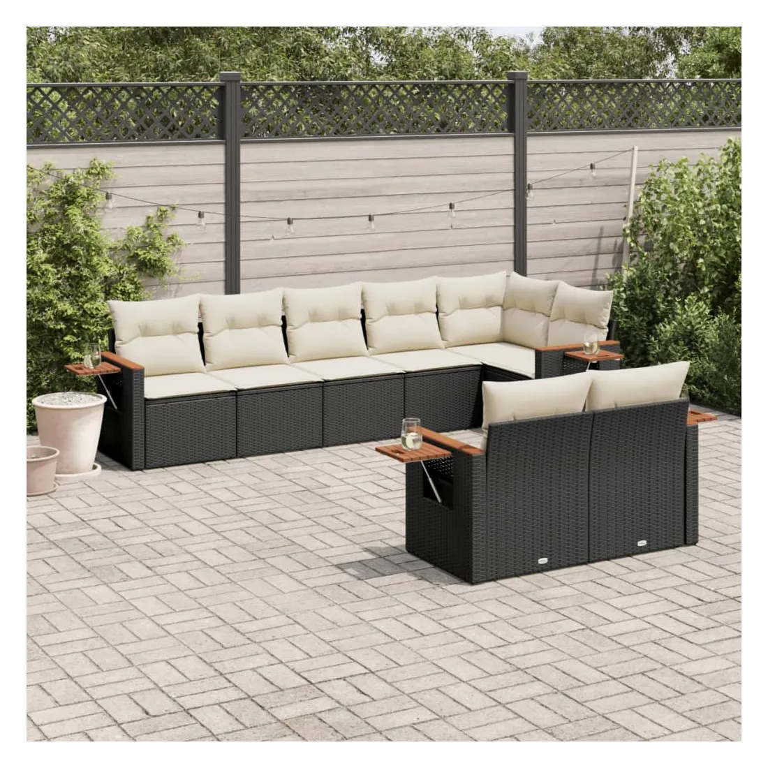 Cet ensemble de canapés de jardin est le complément parfait de votre arrière-cour, terrasse ou patio, offrant un espace confortable et accueillant pour discuter avec la famille et les amis ou simplement se détendre et profiter de l'extérieur. Matériau durable : la résine tressée, également connue sous le nom de poly rotin, est un matériau synthétique solide et nécessitant peu d'entretien qui ressemble au rotin naturel. Il est léger, facile à nettoyer et couramment utilisé pour les meubles d'extérieur en raison de sa durabilité et de ses propriétés de résistance aux intempéries.Fonction de rangement avec sac résistant à l'eau : le mobilier de jardin dispose d'un espace de rangement sous l'assise, complété par un sac résistant à l'eau pour ranger coussins, jouets et autres objets. Le sac intérieur peut être solidement fixé au mobilier d'extérieur grâce à des attaches auto-agrippantes pour plus de stabilité.Table d'appoint pratique : ce mobilier d'extérieur comprend une table d'appoint pliable avec un ressort à gaz sur les accoudoirs, offrant un endroit pratique pour garder vos essentiels à portée de main.Housse amovible et lavable : ces coussins de siège sont dotés de housses amovibles pour un lavage et un entretien faciles.Conception modulaire : cet ensemble de meubles d'extérieur a une conception modulaire, ce qui le rend complètement flexible et facile à déplacer, afin que vous puissiez créer un agencement de meubles d'extérieur personnalisé. Bon à savoir :Pour que vos meubles d'extérieur restent beaux, nous vous recommandons de les protéger avec une housse imperméable.