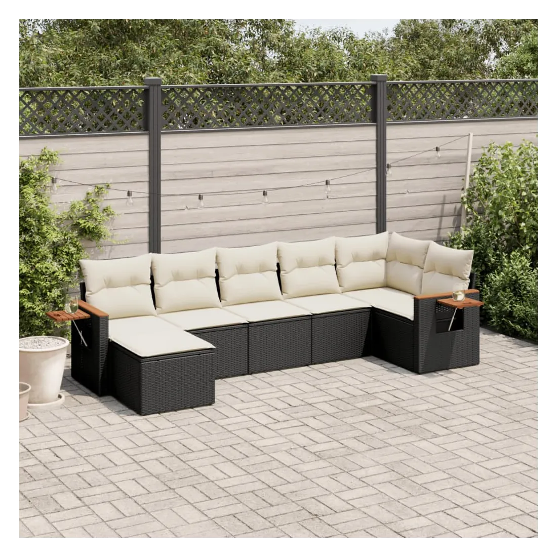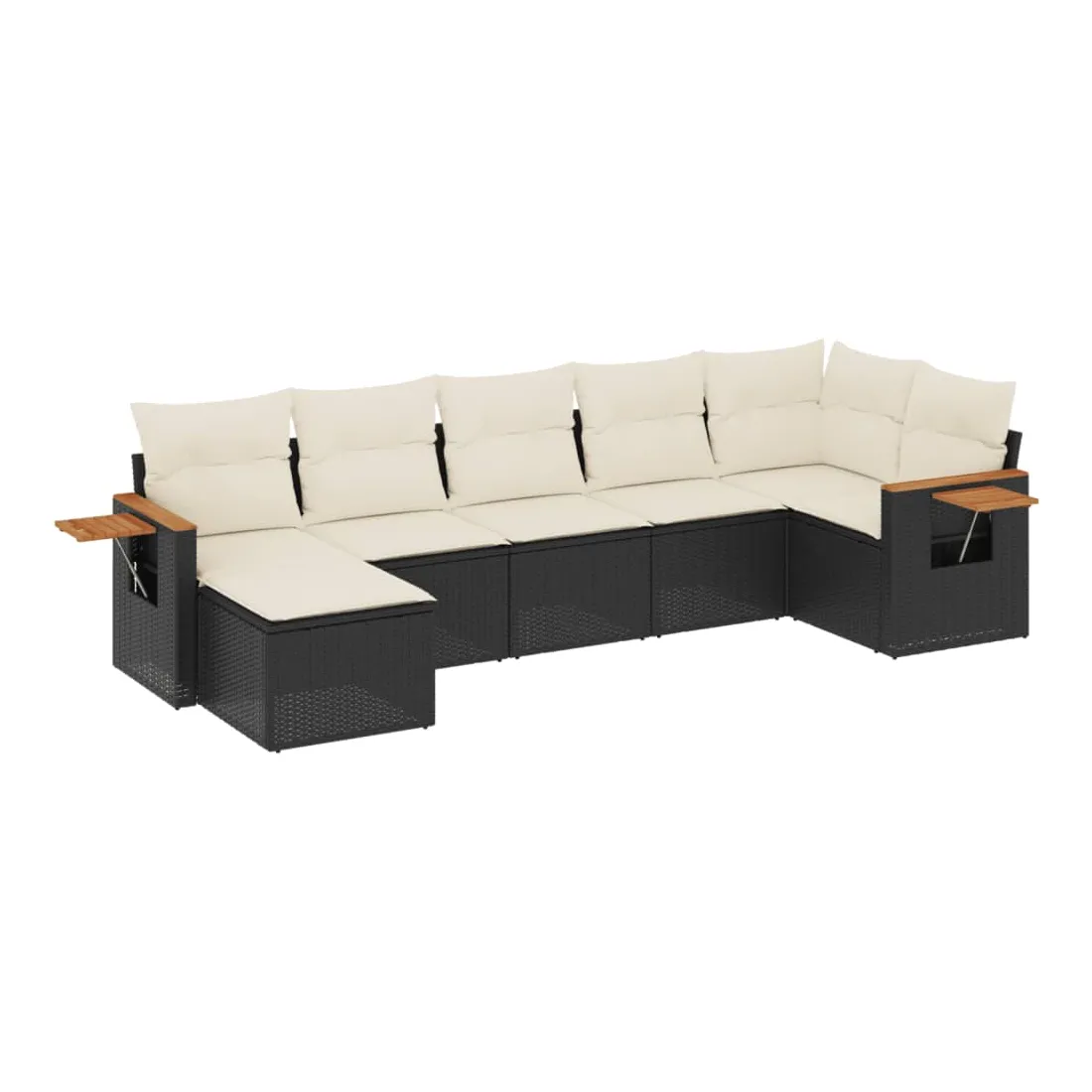 Salon de jardin 7 pcs avec coussins noir résine tressée