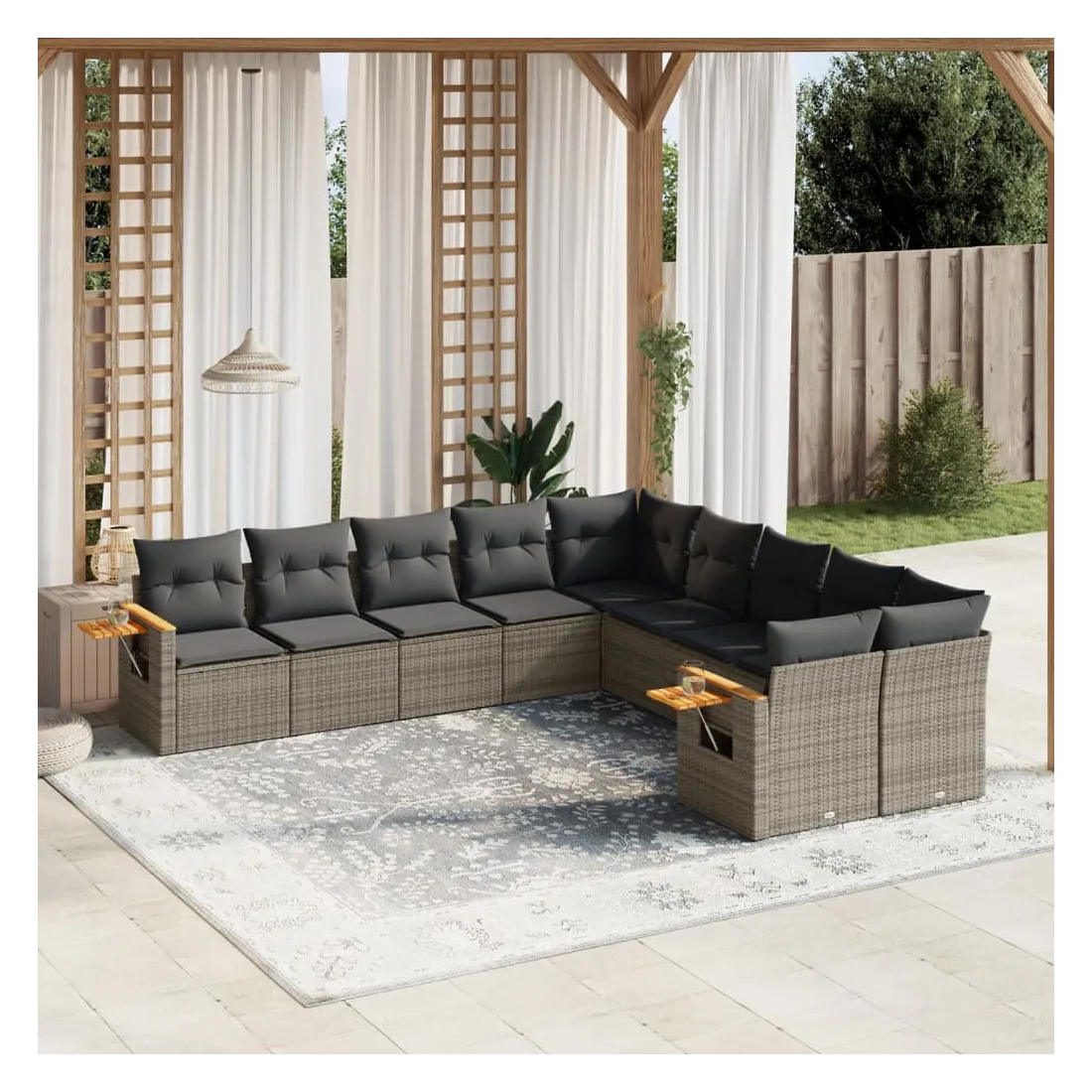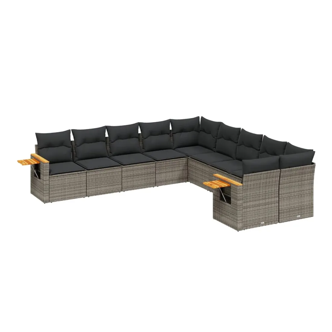 Salon de jardin avec coussins 10 pcs gris résine tressée