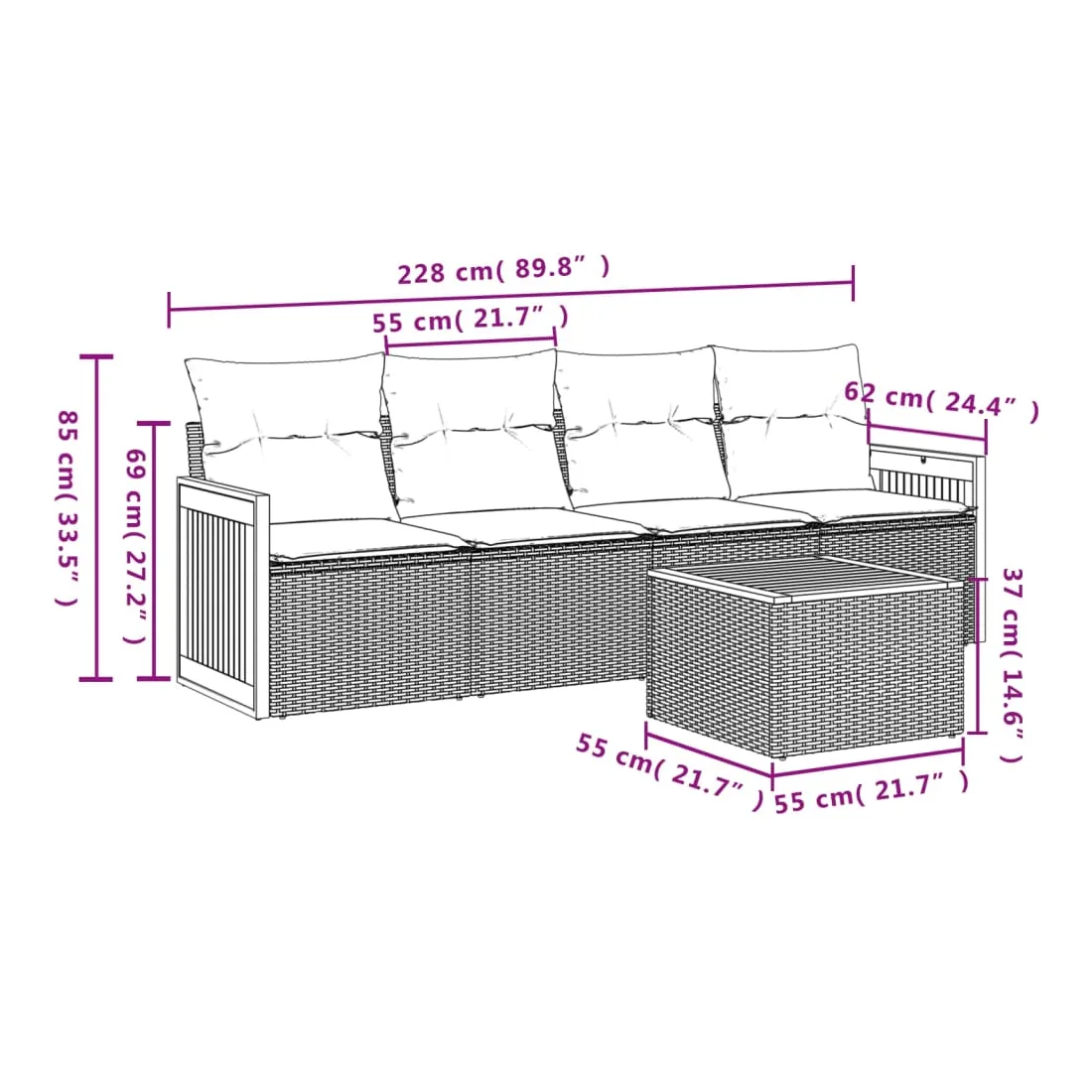 - Dimensions : 55 x 55 x 37 cm (L x l x H)