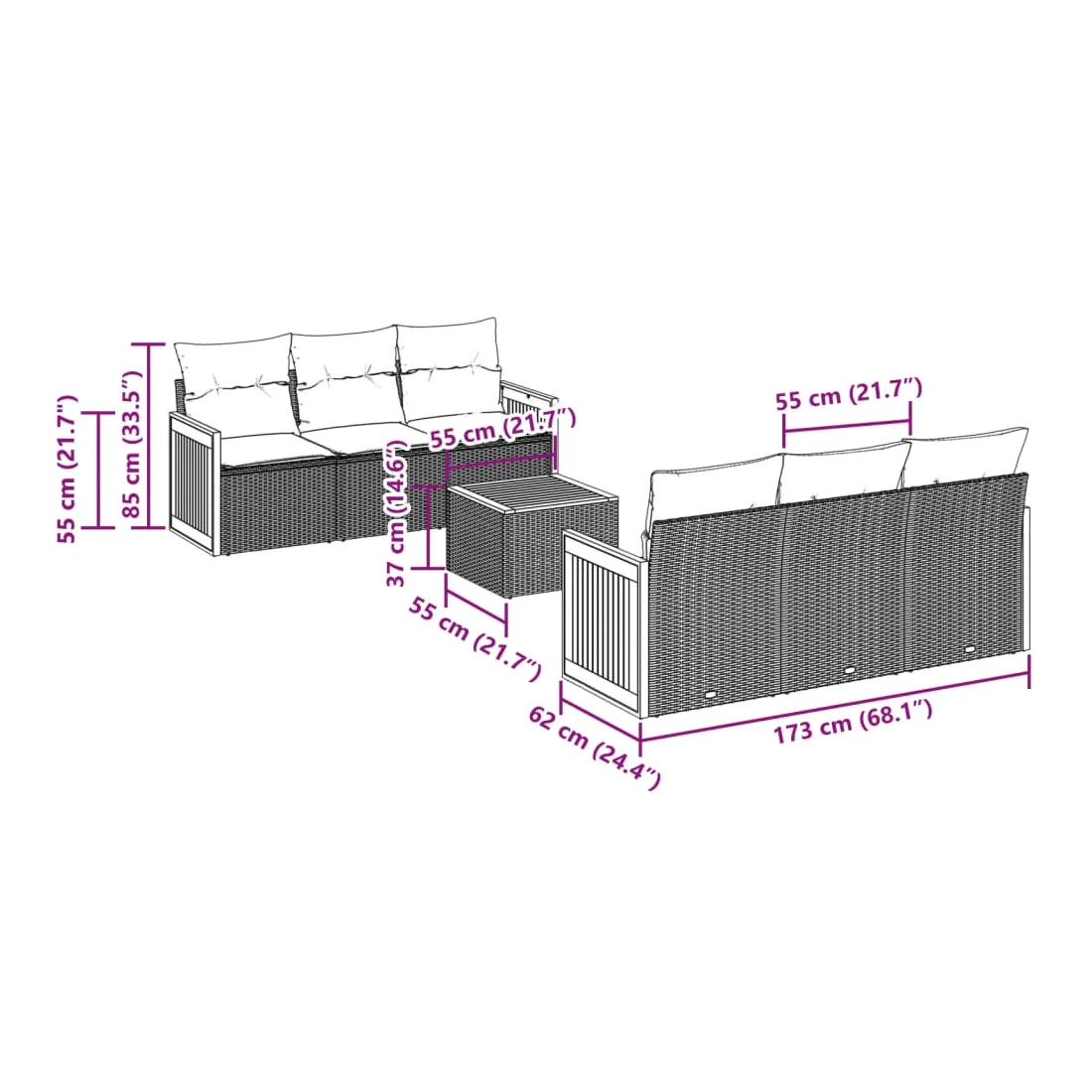 - Dimensions : 55 x 55 x 37 cm (L x l x H)