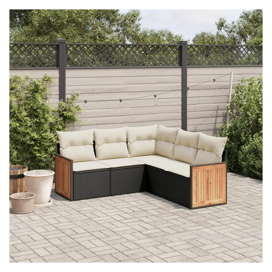 Salon de jardin 5 pcs avec coussins noir résine tressée