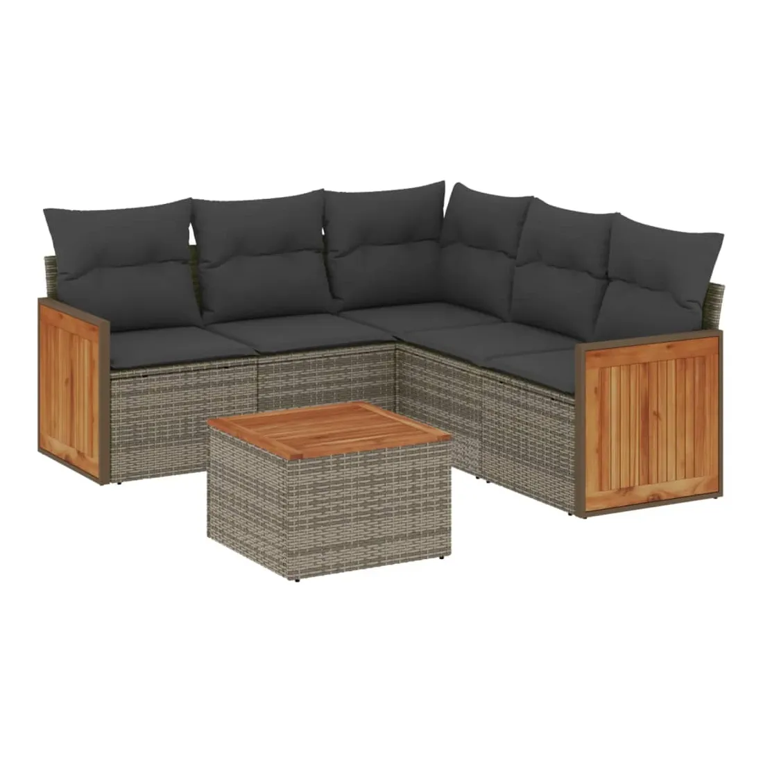Cet ensemble de canapés de jardin est le complément parfait de votre arrière-cour, terrasse ou patio, offrant un espace confortable et accueillant pour discuter avec la famille et les amis ou simplement se détendre et profiter de l'extérieur. Matériau durable : la résine tressée, également connue sous le nom de poly rotin, est un matériau synthétique solide et nécessitant peu d'entretien qui ressemble au rotin naturel. Il est léger, facile à nettoyer et couramment utilisé pour les meubles d'extérieur en raison de sa durabilité et de ses propriétés de résistance aux intempéries.Fonction de rangement avec sac résistant à l'eau : le mobilier de jardin dispose d'un espace de rangement sous l'assise, complété par un sac résistant à l'eau pour ranger coussins, jouets et autres objets. Le sac intérieur peut être solidement fixé au mobilier d'extérieur grâce à des attaches auto-agrippantes pour plus de stabilité.Dessus stable et facile à nettoyer : cette table de jardin a un dessus en bois d'acacia robuste, durable et facile à nettoyer avec un chiffon humide.Housse amovible et lavable : ces coussins de siège sont dotés de housses amovibles pour un lavage et un entretien faciles.Conception modulaire : cet ensemble de meubles d'extérieur a une conception modulaire, ce qui le rend complètement flexible et facile à déplacer, afin que vous puissiez créer un agencement de meubles d'extérieur personnalisé. Bon à savoir :Pour que vos meubles d'extérieur restent beaux, nous vous recommandons de les protéger avec une housse imperméable.