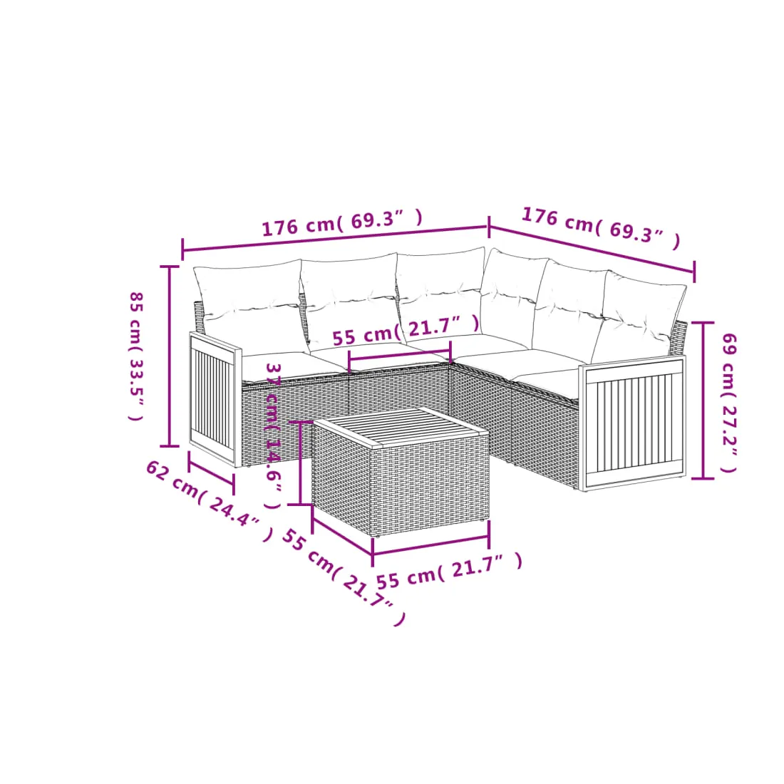 - Dimensions : 55 x 55 x 37 cm (L x l x H)