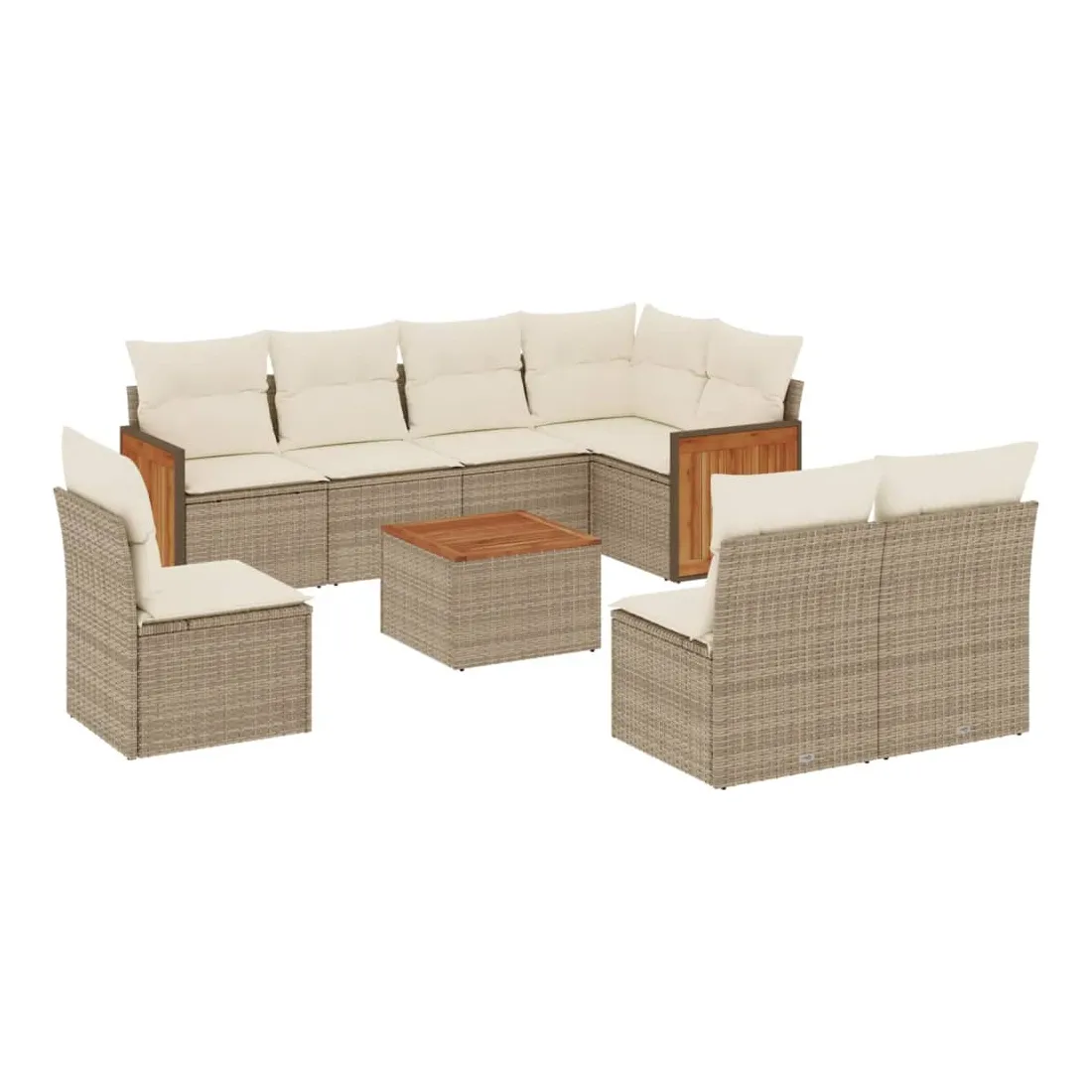 Cet ensemble de canapés de jardin est le complément parfait de votre arrière-cour, terrasse ou patio, offrant un espace confortable et accueillant pour discuter avec la famille et les amis ou simplement se détendre et profiter de l'extérieur. Matériau durable : la résine tressée, également connue sous le nom de poly rotin, est un matériau synthétique solide et nécessitant peu d'entretien qui ressemble au rotin naturel. Il est léger, facile à nettoyer et couramment utilisé pour les meubles d'extérieur en raison de sa durabilité et de ses propriétés de résistance aux intempéries.Fonction de rangement avec sac résistant à l'eau : le mobilier de jardin dispose d'un espace de rangement sous l'assise, complété par un sac résistant à l'eau pour ranger coussins, jouets et autres objets. Le sac intérieur peut être solidement fixé au mobilier d'extérieur grâce à des attaches auto-agrippantes pour plus de stabilité.Dessus stable et facile à nettoyer : cette table de jardin a un dessus en bois d'acacia robuste, durable et facile à nettoyer avec un chiffon humide.Housse amovible et lavable : ces coussins de siège sont dotés de housses amovibles pour un lavage et un entretien faciles.Conception modulaire : cet ensemble de meubles d'extérieur a une conception modulaire, ce qui le rend complètement flexible et facile à déplacer, afin que vous puissiez créer un agencement de meubles d'extérieur personnalisé. Bon à savoir :Pour que vos meubles d'extérieur restent beaux, nous vous recommandons de les protéger avec une housse imperméable.