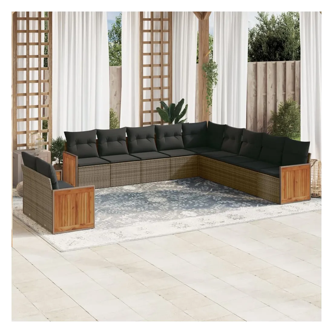 - Matériau : résine tressée, acier enduit de poudre, bois d'acacia massif avec finition à l'huile